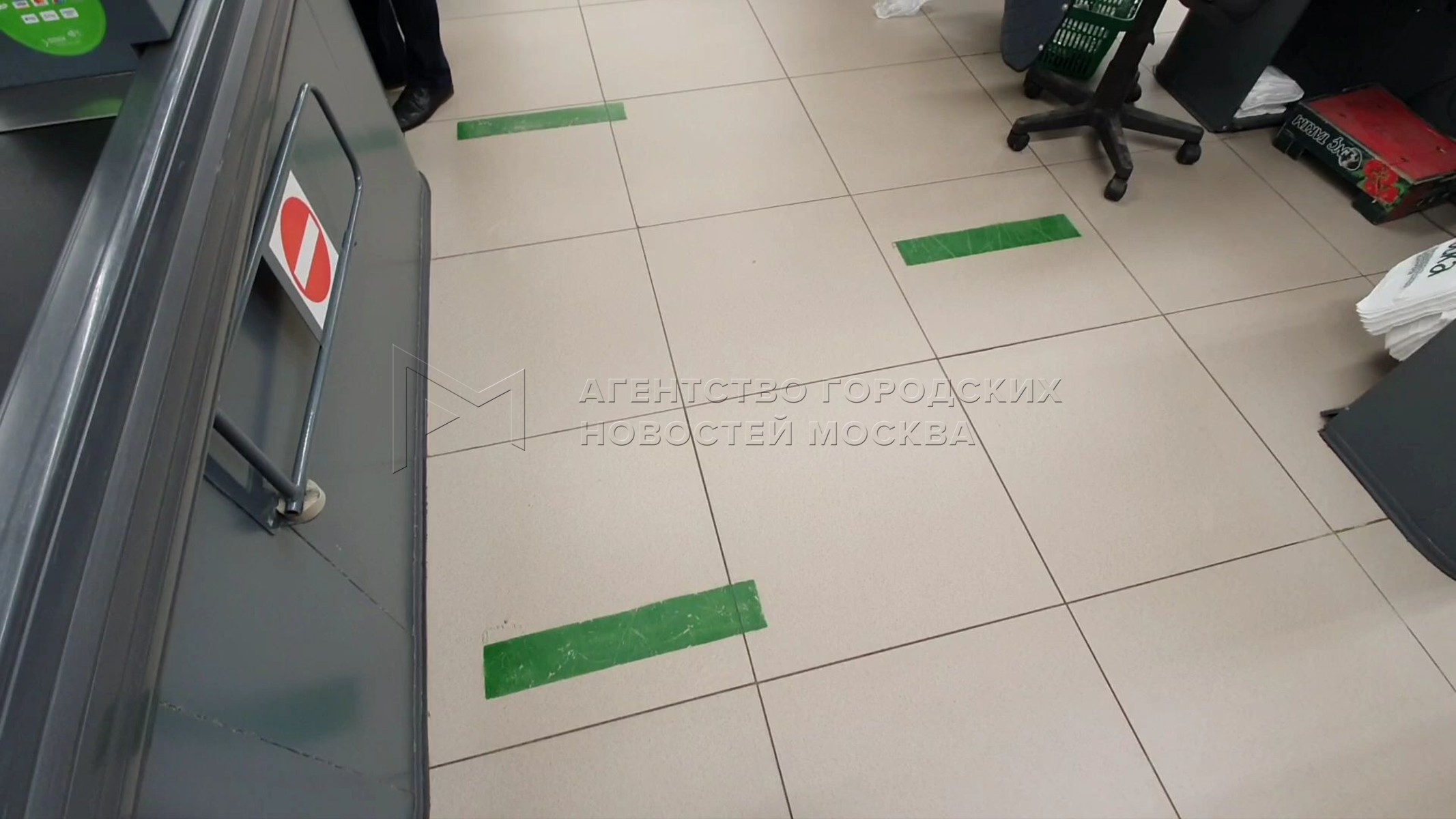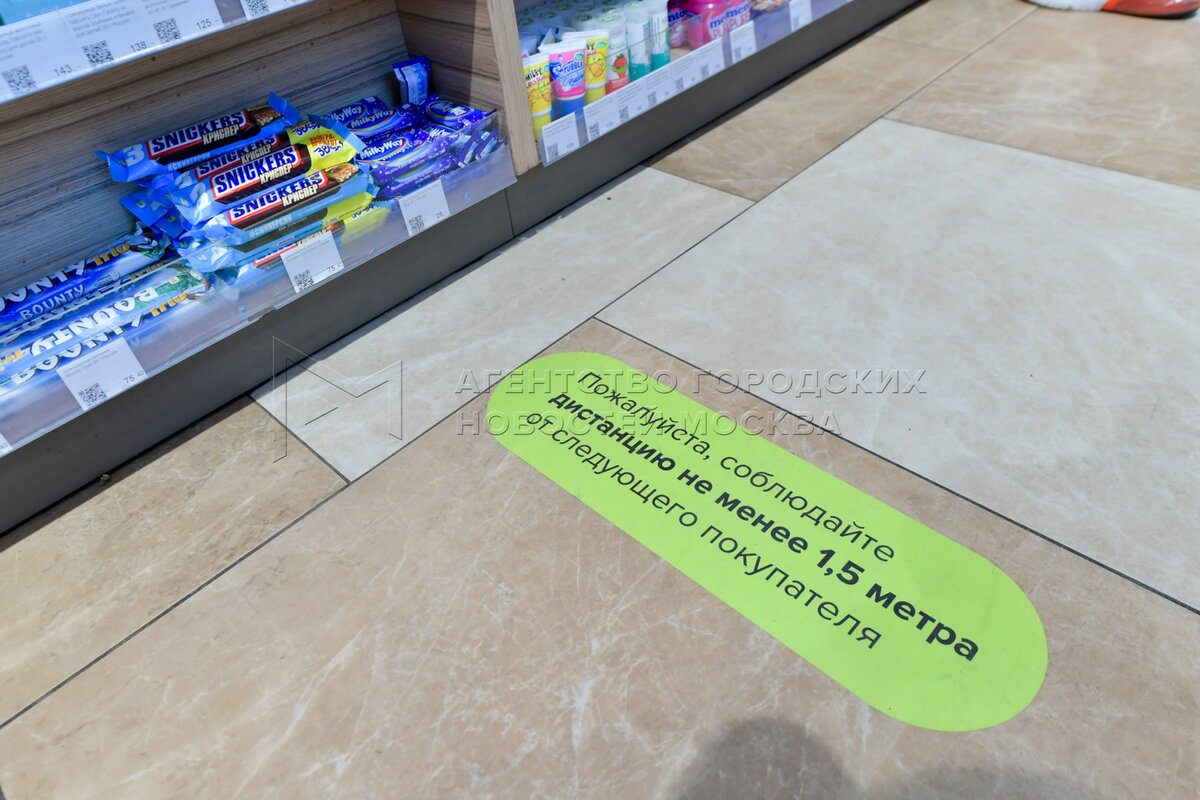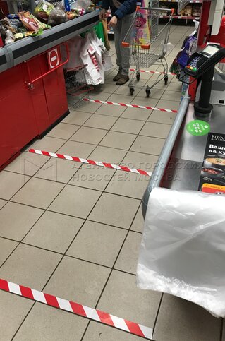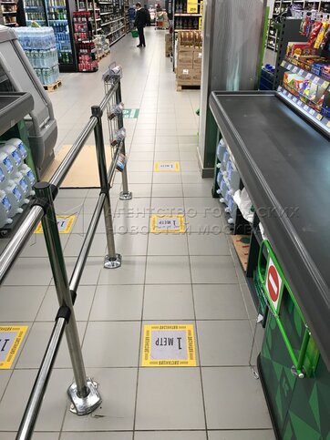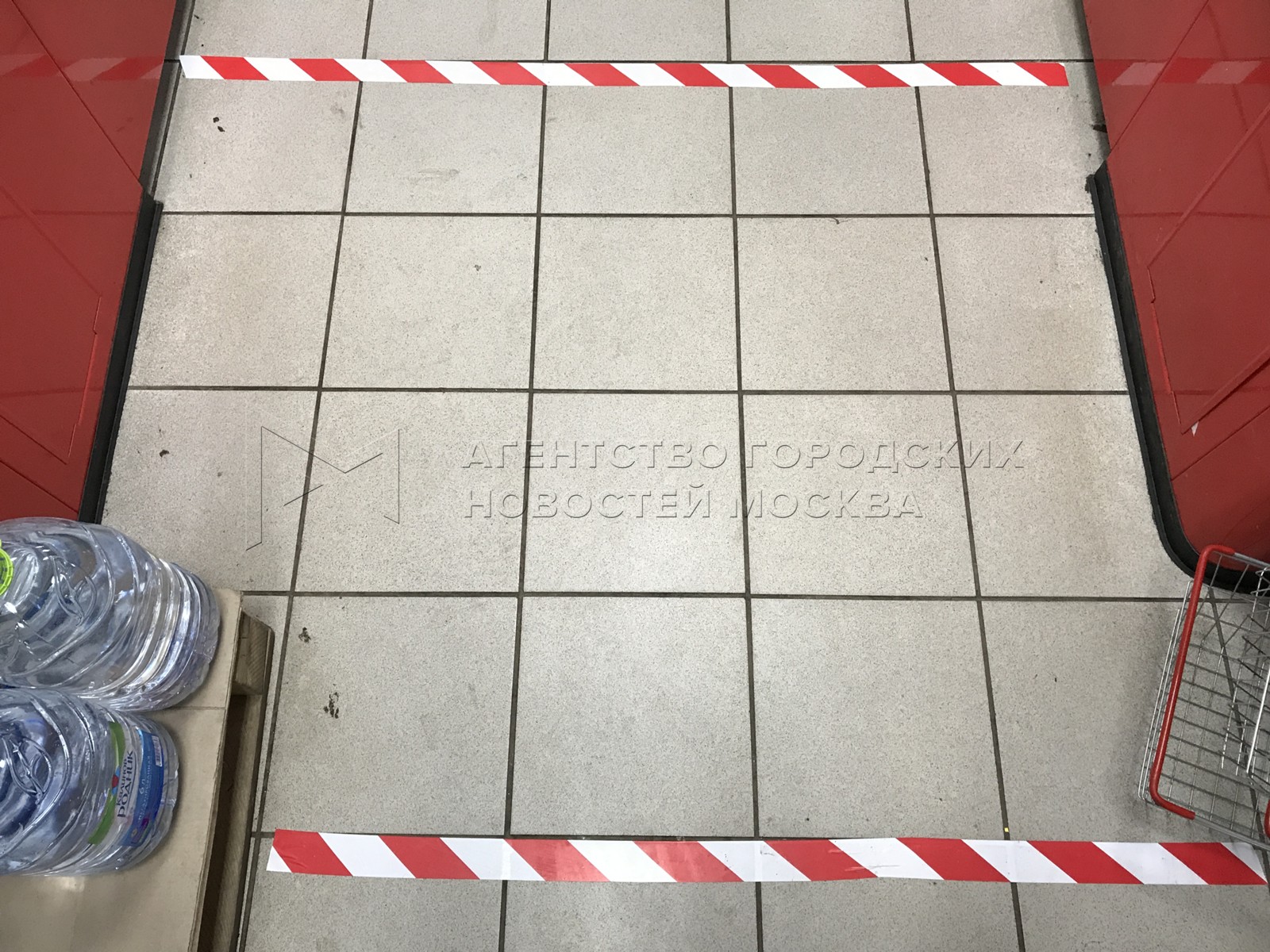 Разметка для дистанцирования покупателей в магазинах Москвы.