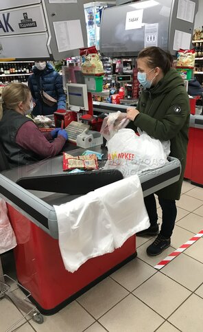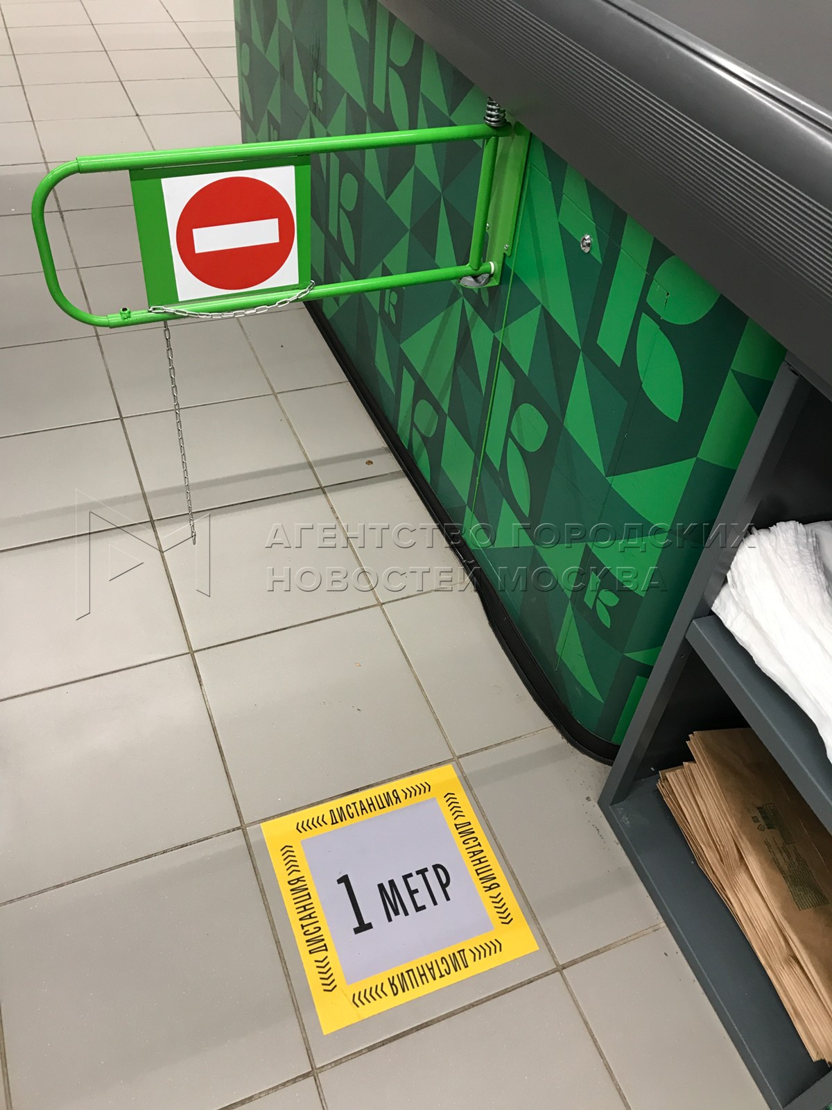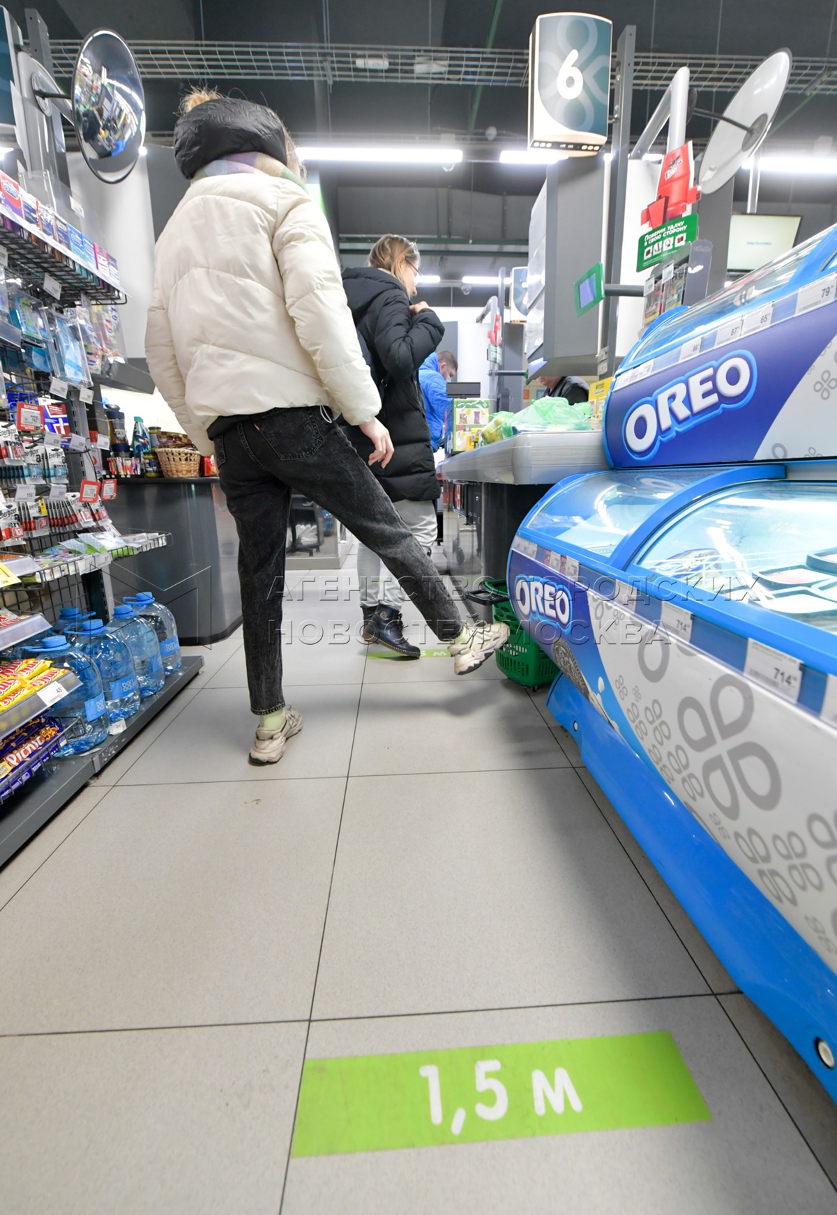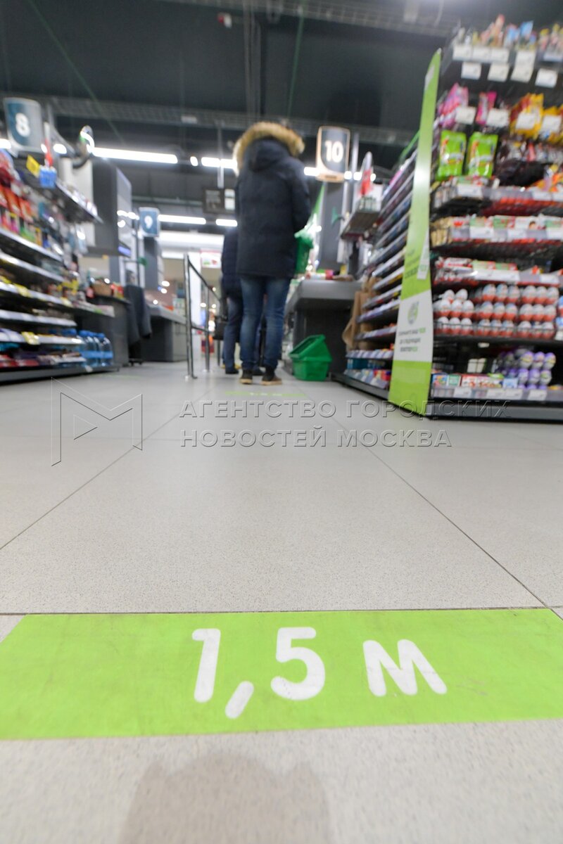 Разметка для дистанцирования покупателей в магазинах Москвы.