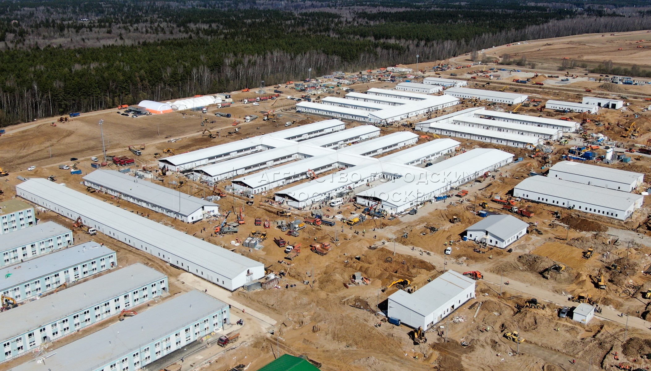 Вид с квадрокоптера на ход строительства комплекса новой инфекционной больницы в ТиНАО 9 апреля 2020 года.