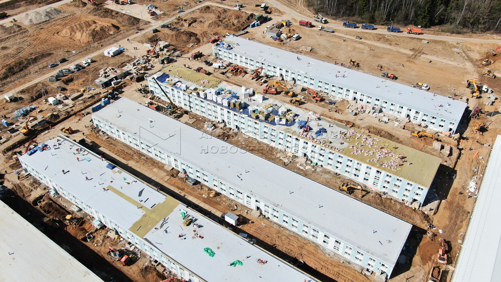 Вид с квадрокоптера на ход строительства комплекса новой инфекционной больницы в ТиНАО 9 апреля 2020 года.