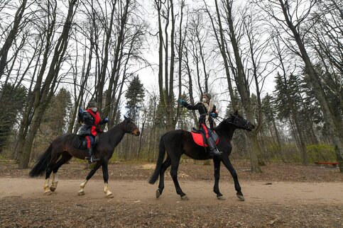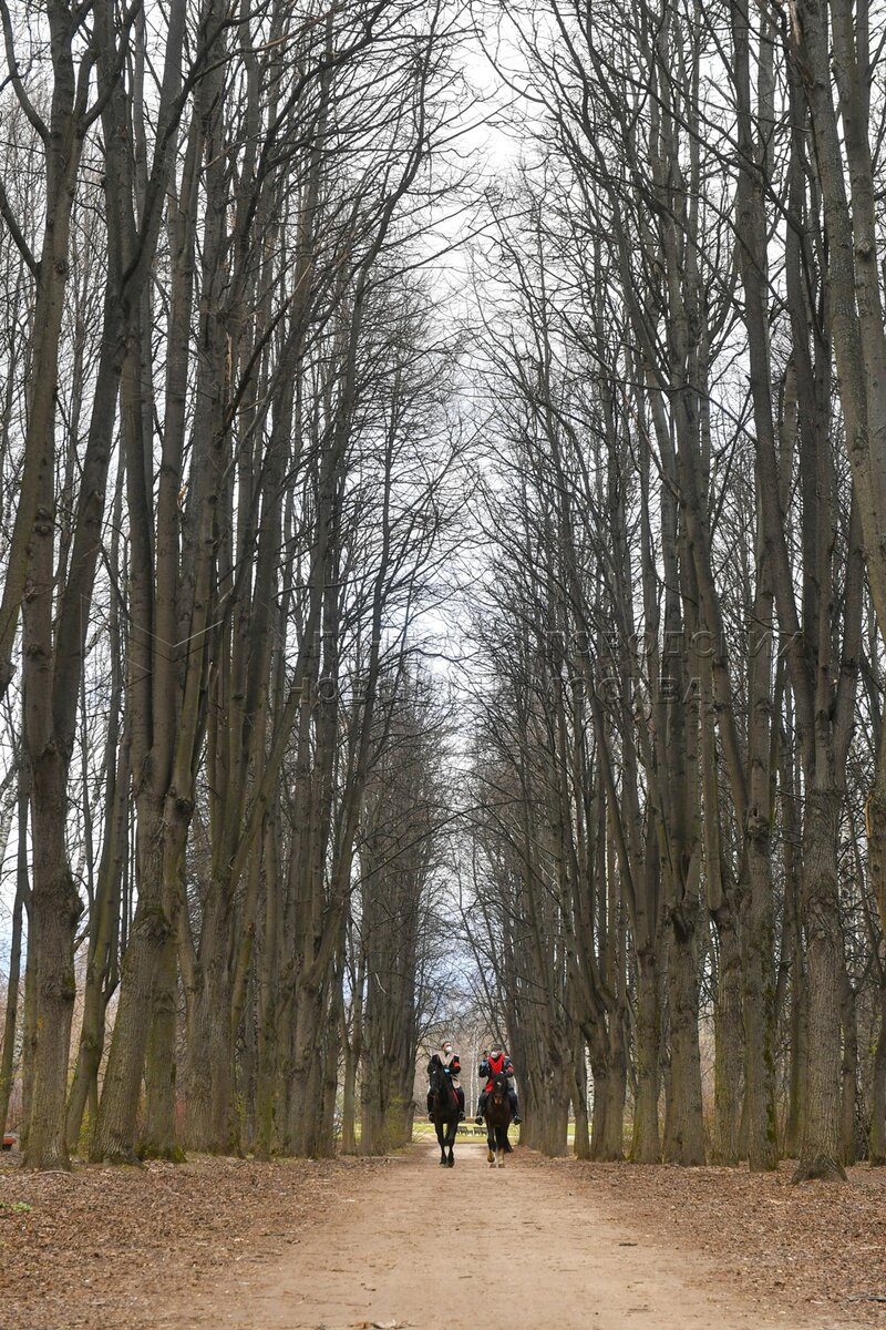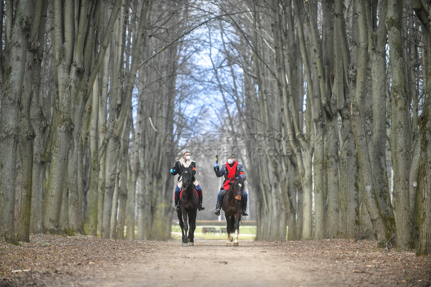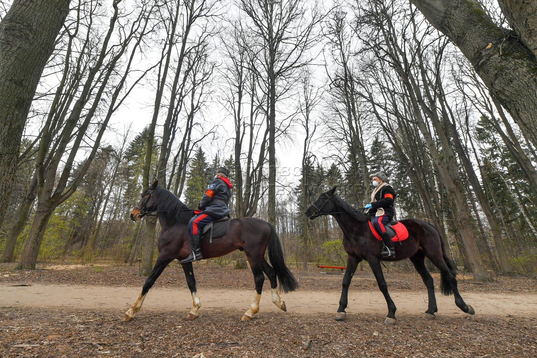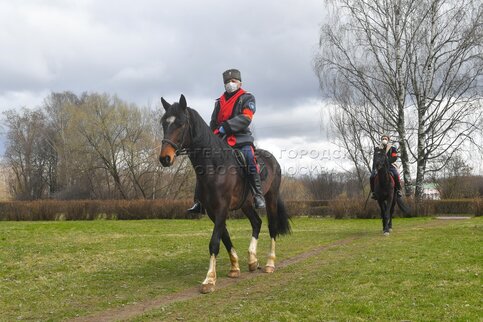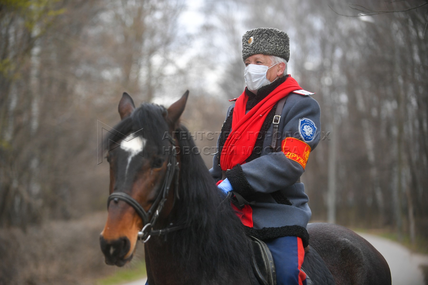 • Описание: Патрулирование музея-усадьбы «Кусково» на востоке Москвы казаками-дружинниками во время пандемии COVID-19 11 апреля 2020 г.