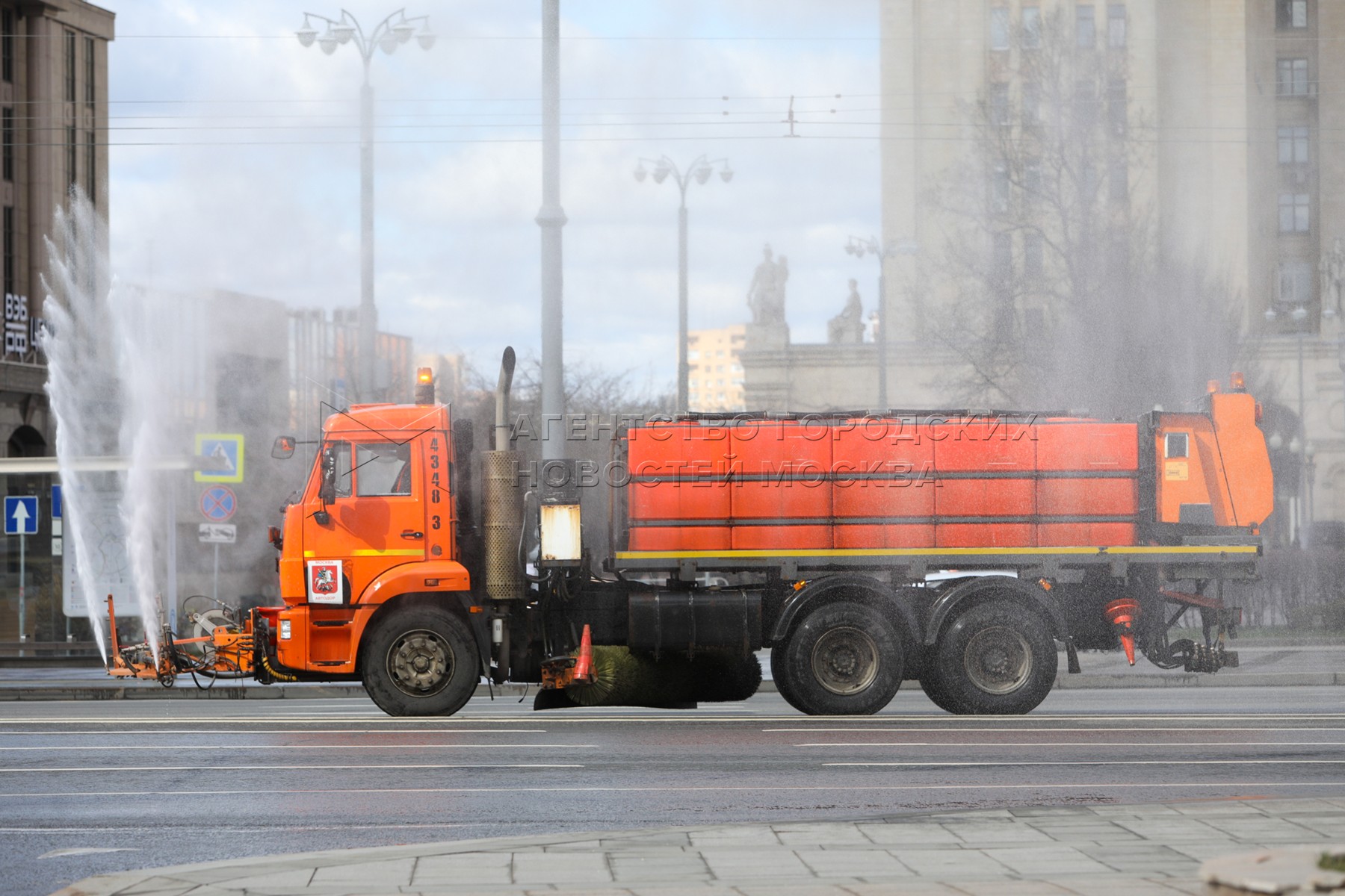 • Заголовок: Промывка и дезинфекция улиц и бульваров Москвы во время пандемии коронавируса