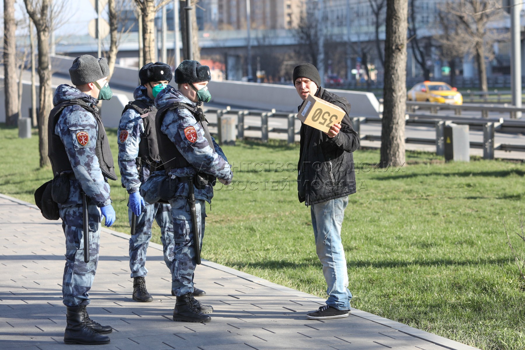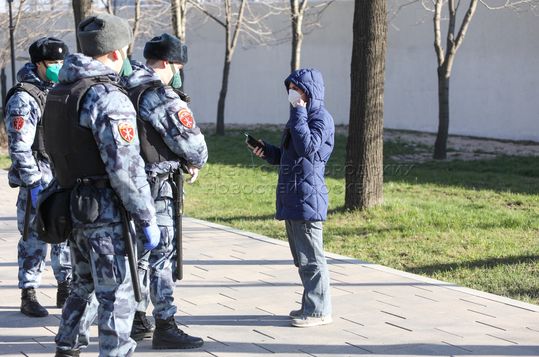 Профилактическая работа сотрудников Росгвардии с гражданами по соблюдению режима самоизоляции в Москве.
