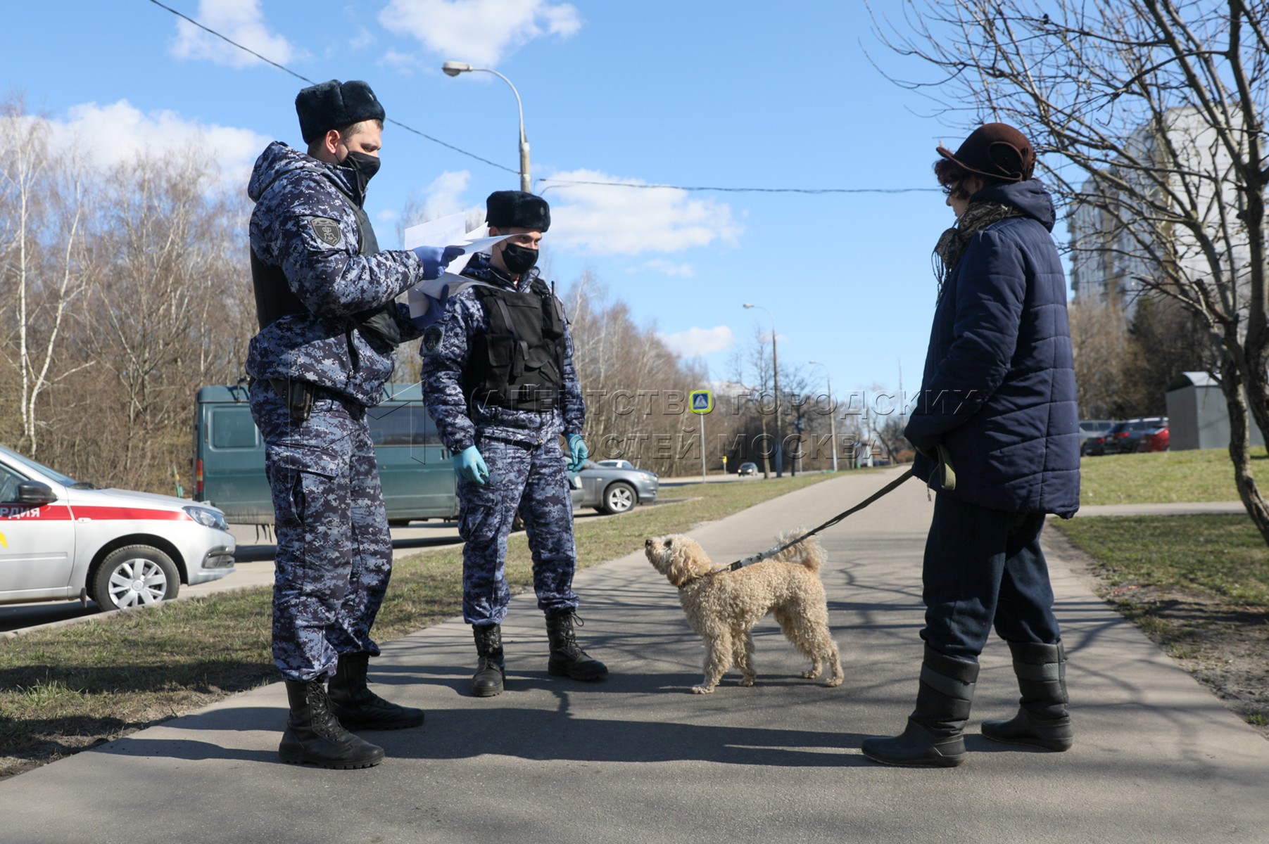• Заголовок: Профилактическая работа сотрудников Росгвардии с гражданами по соблюдению режима самоизоляции в Москве
