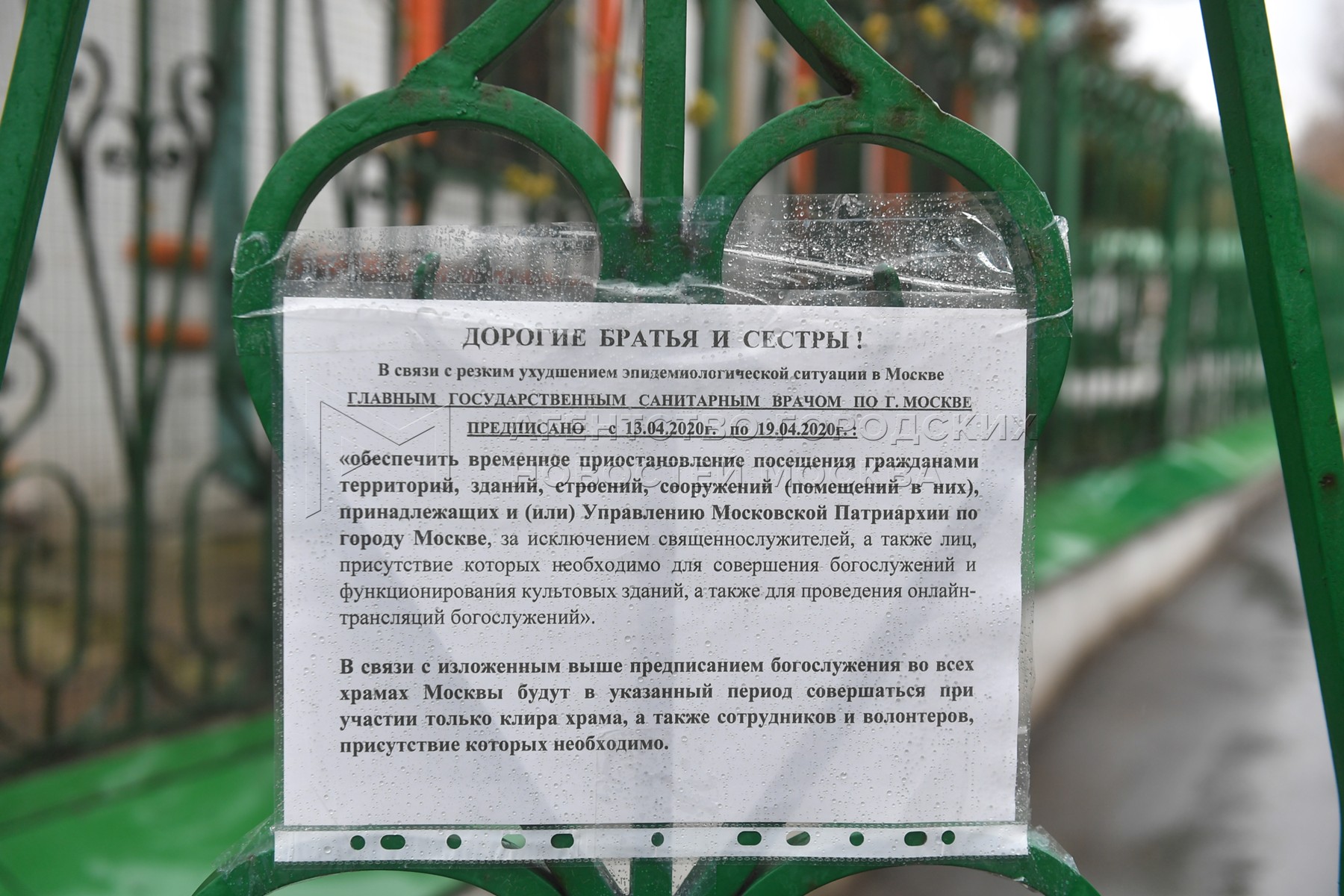 Объявление на воротах Храма Святителя Николая в Старом Ваганькове, закрытого для ...