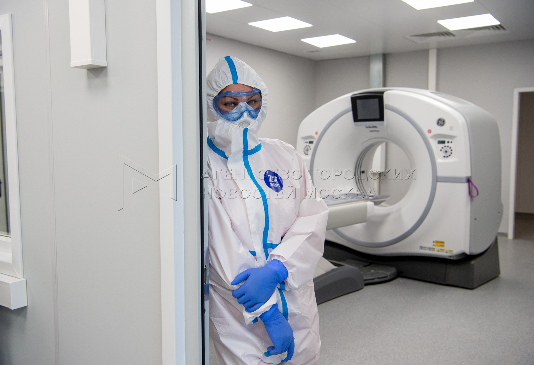 • Описание: Мэр Москвы Сергей Собянин открыл на территории ТиНАО инфекционную больницу для лечения пациентов с коронавирусом. Фото: пресс-служба мэра и правительства Москвы. Гришкин Денис.