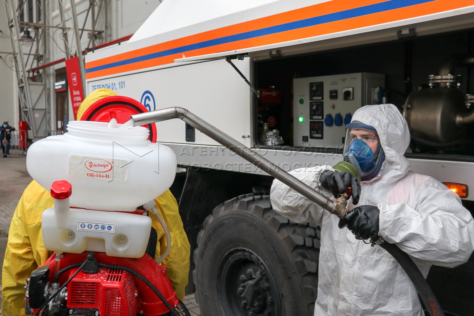Противоэпидемическая обработка Киевского вокзала силами подразделений МЧС.