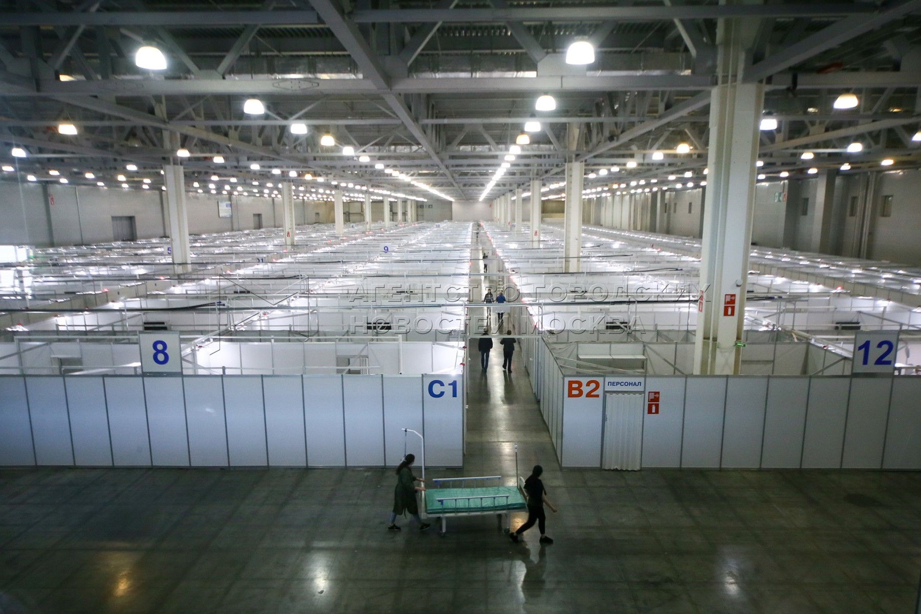 Временный инфекционный центр для лечения больных коронавирусом на территории выставочного комплекса «Крокус Экспо».