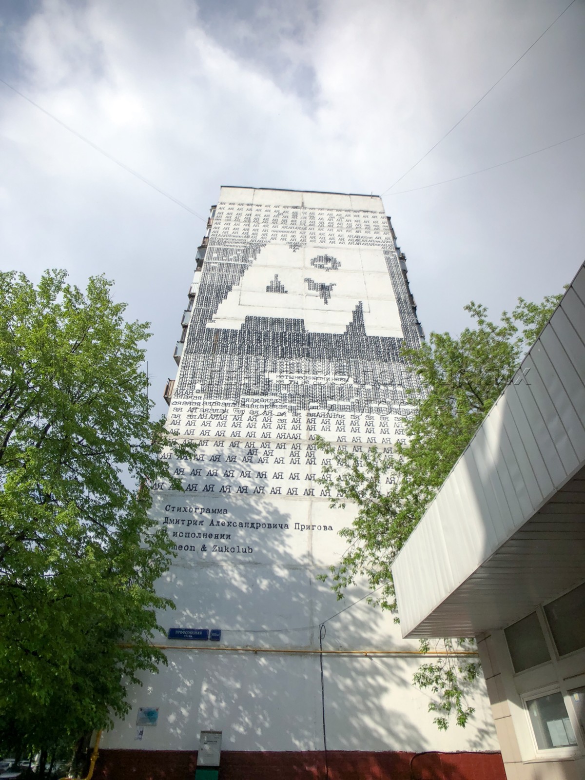 • Заголовок: Граффити со стихограммой «АЯ» поэта и художника-концептуалиста Дмитрия Пригова в Коньково