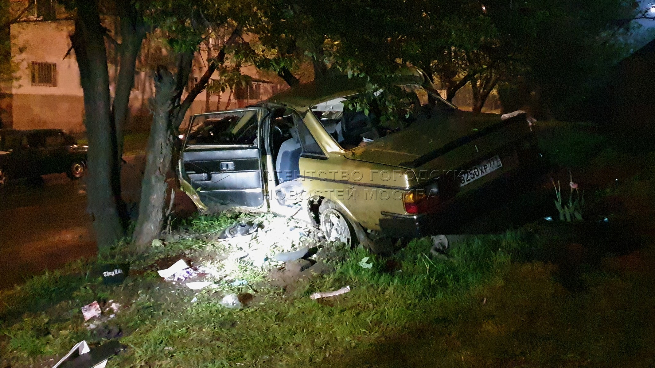 • Заголовок: Последствия наезда легкового автомобиля на дерево на юге Москвы