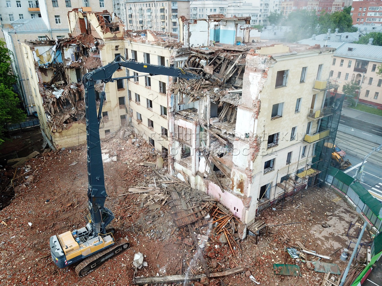 • Заголовок: Вид с квадрокоптера на снос расселенного дома на Русаковской улице по программе реновации