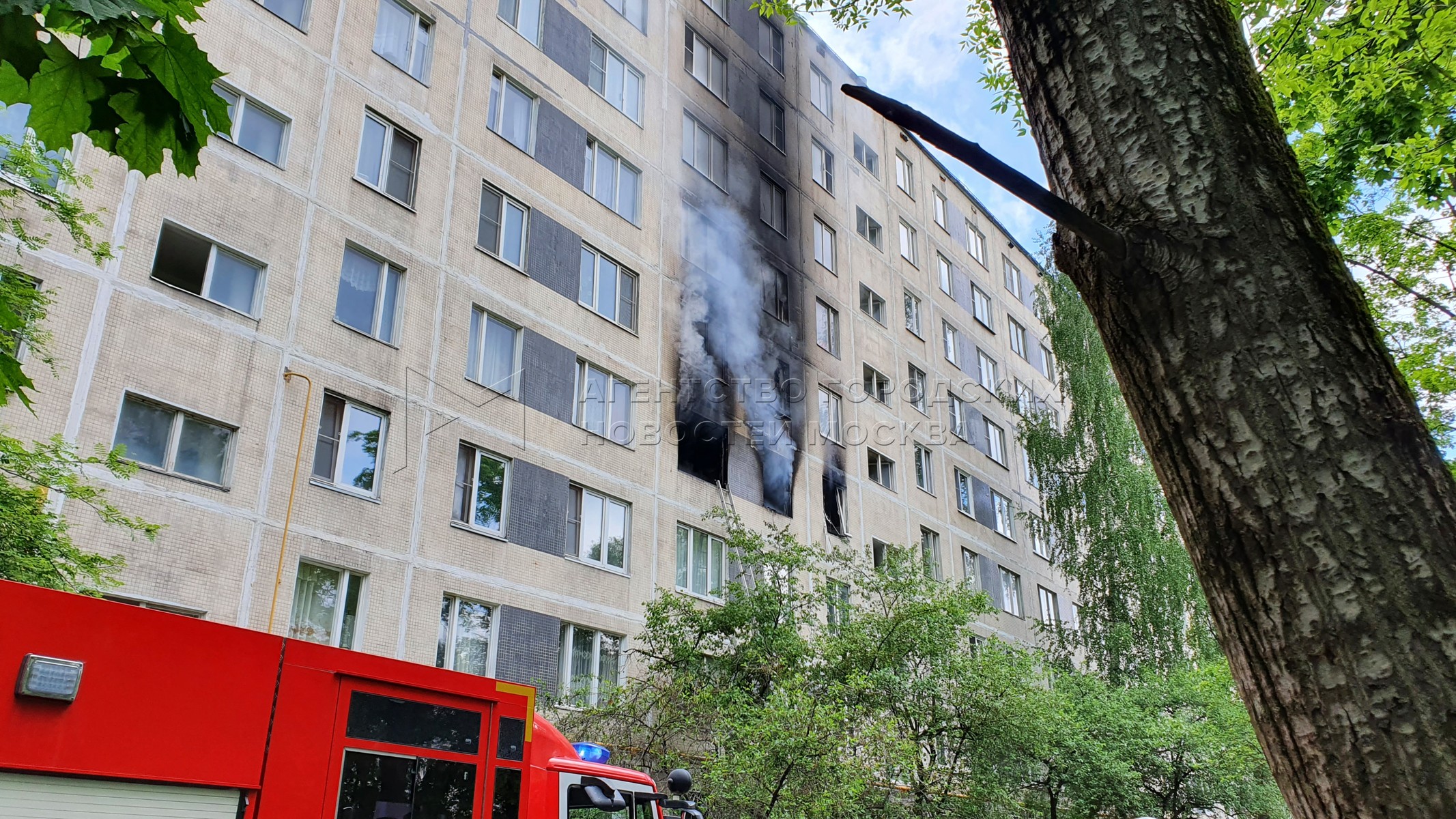 Работа пожарно-спасательных подразделений по ликвидации возгорания в жилом доме по адресу: ул. Дорожная, д. 7, кор. 3.