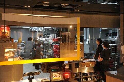 - Заголовок: Подготовка ресторана «Макдоналдс» к открытию после смягчения режима самоизоляции в Москве