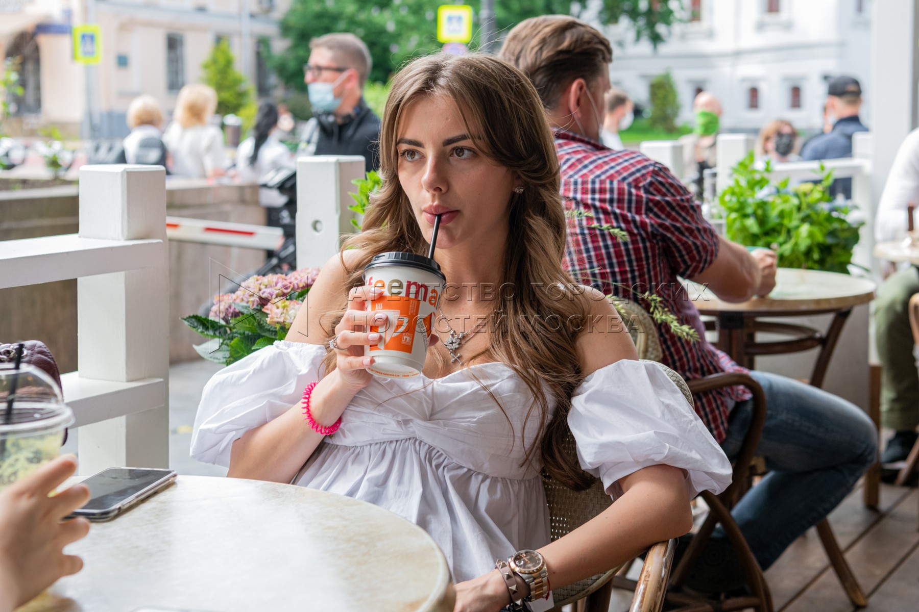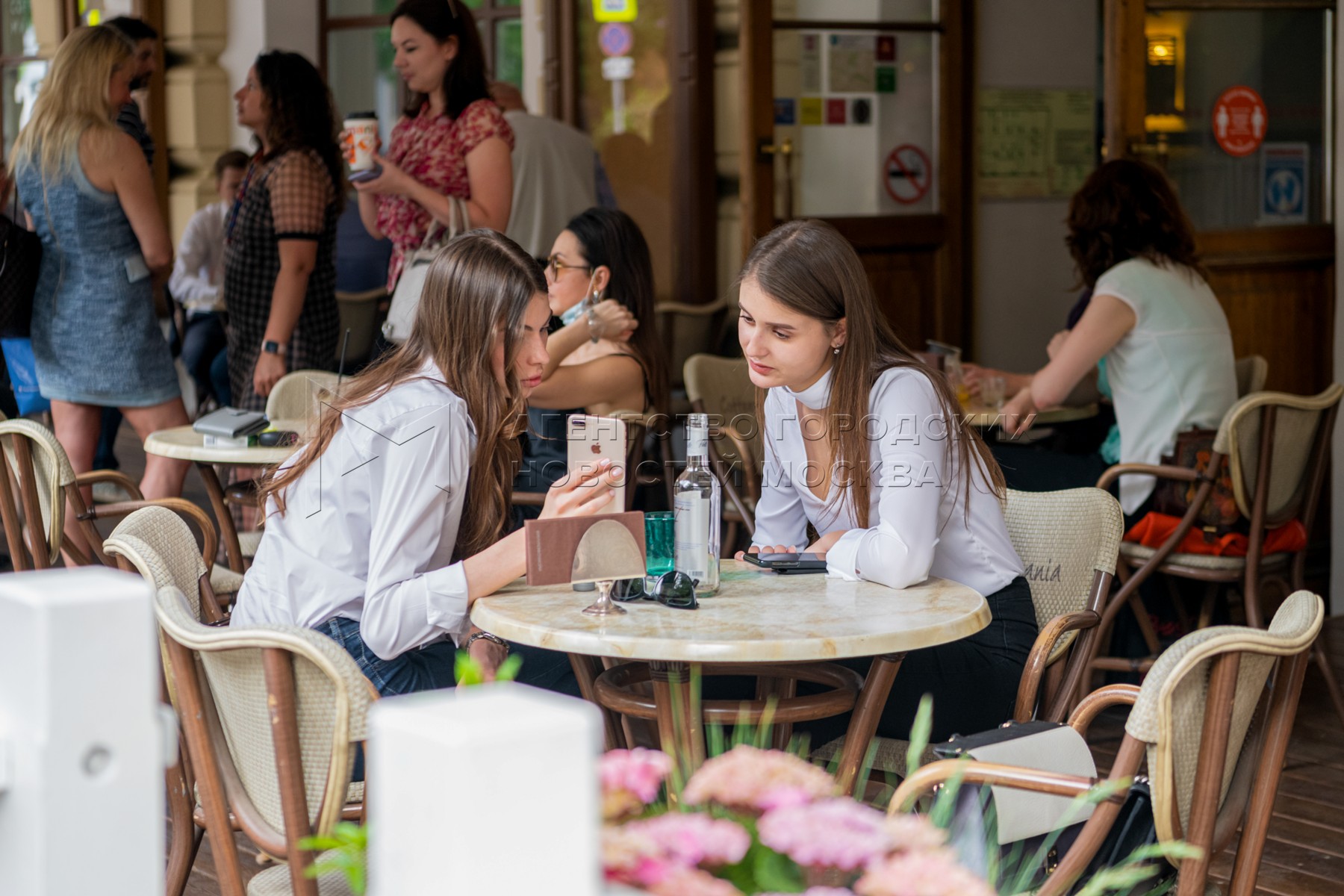Летняя веранда кофейни «Кофемания» на Большой Никитской улице, открывшаяся после ...