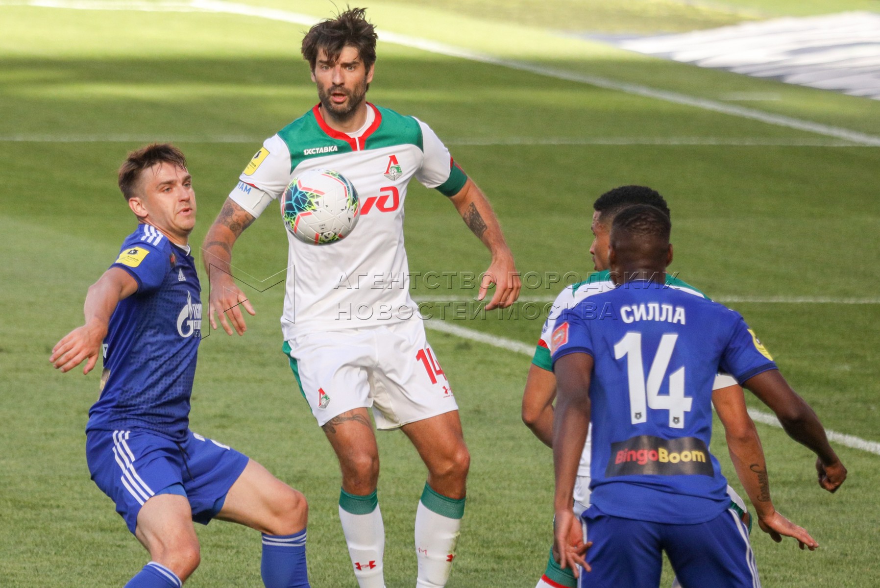 Слева направо - игрок «Оренбурга» Даниэль Мишкич, игрок «Локомотива» Мурило, игро...