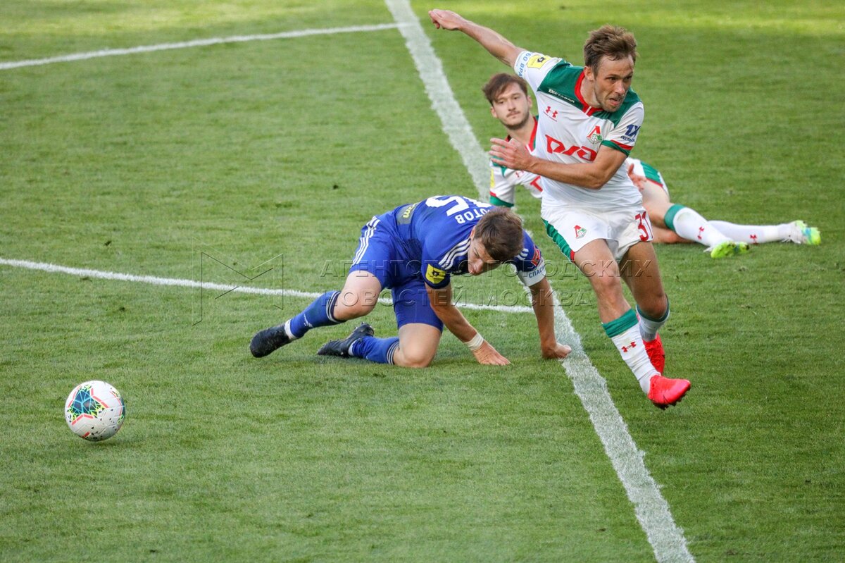 Игроки «Локомотива» во время футбольного матча Российской премьер-лиги «Локомотив...