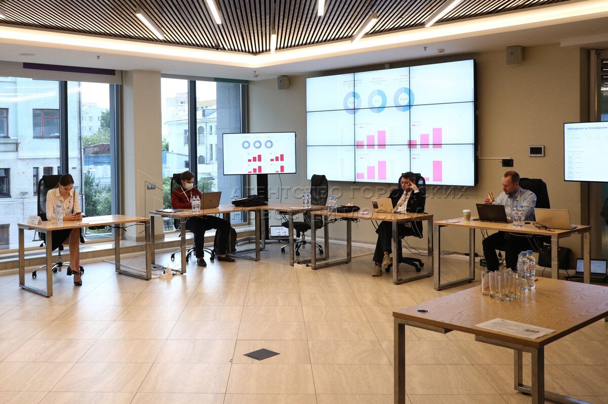 Работа территориальной комиссии дистанционного электронного голосования на ул. Покровка, межрегиональный избирательный участок (Москва и Нижегородская область).