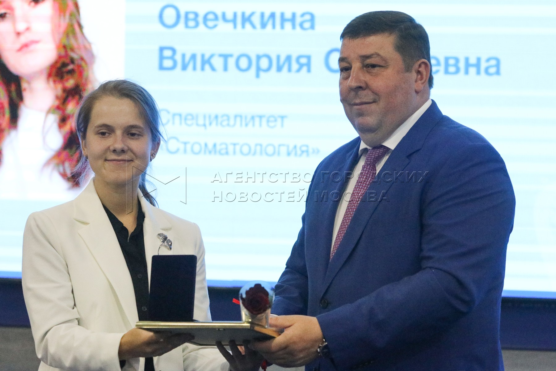 - Описание: Ректор Первого Московского государственного медицинского университета имени Сеченова Петр Глыбочко (справа) во время награждения выпускников за достижения в учебе, науке и общественной жизни.