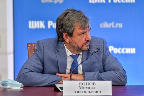 Член Центральной избирательной комиссии (ЦИК) РФ Антон Лопатин во время работы ин...