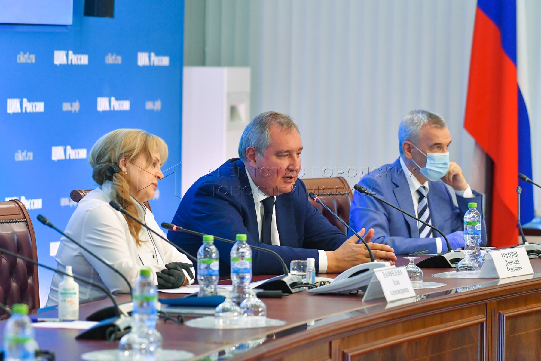 Глава Роскосмоса Дмитрий Рогозин во время работы информационного центра ЦИК РФ 1 ...