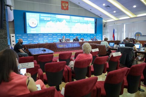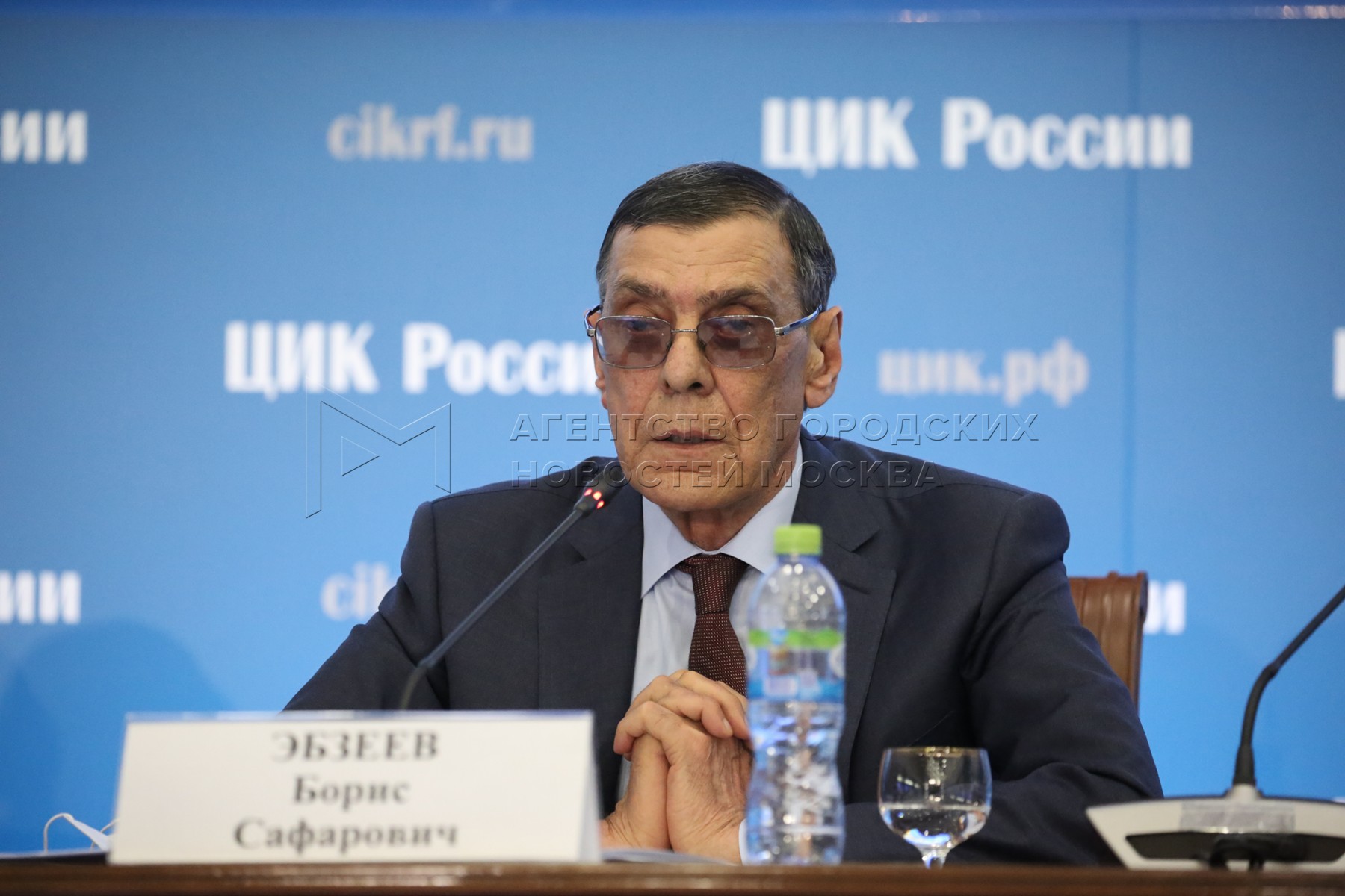 Член Центральной избирательной комиссии (ЦИК) РФ Борис Эбзеев во время работы инф...