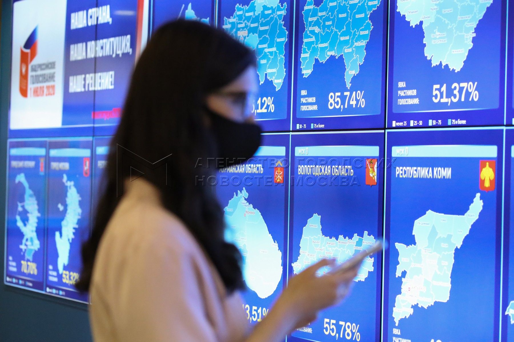 • Описание: Работа информационного центра ЦИК РФ 1 июля 2020 года.