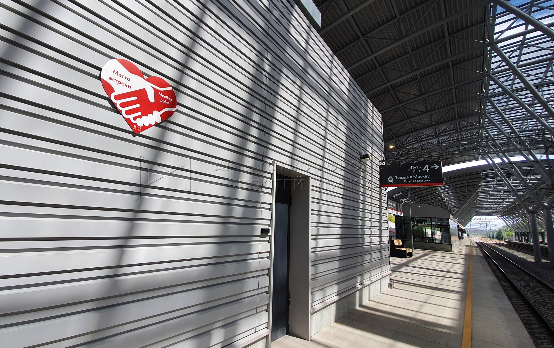 • Описание: Специальные стикеры с надписью «Место встречи» на станциях Московских центральных диаметров (МЦД).