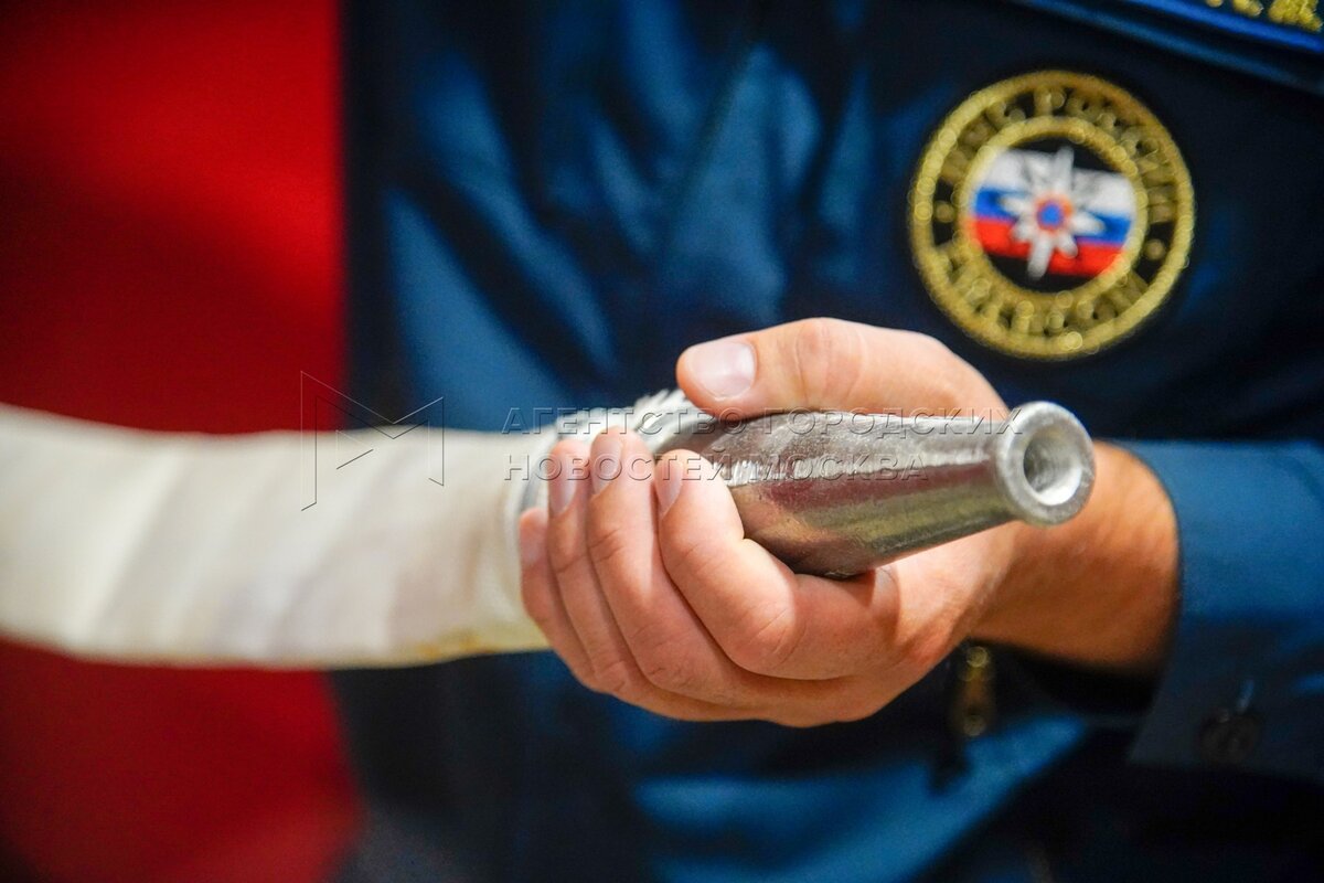 • Описание: Сотрудник МЧС РФ Алексей Калачев во время демонстрации системы раннего обнаружения пожара и работы противопожарных систем в Музее Победы.