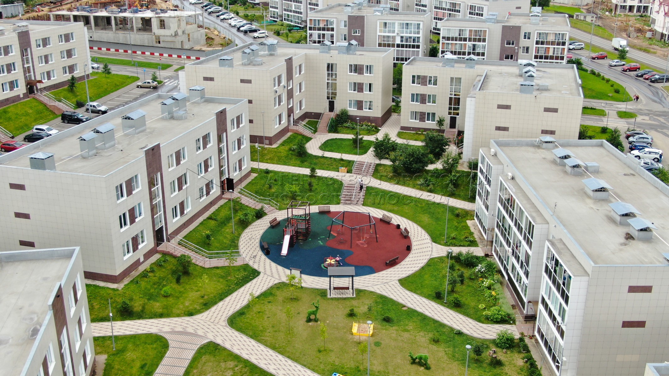 Вид с квадрокоптера на жилой комплекс «Рутаун», расположенный на Светлом бульваре...