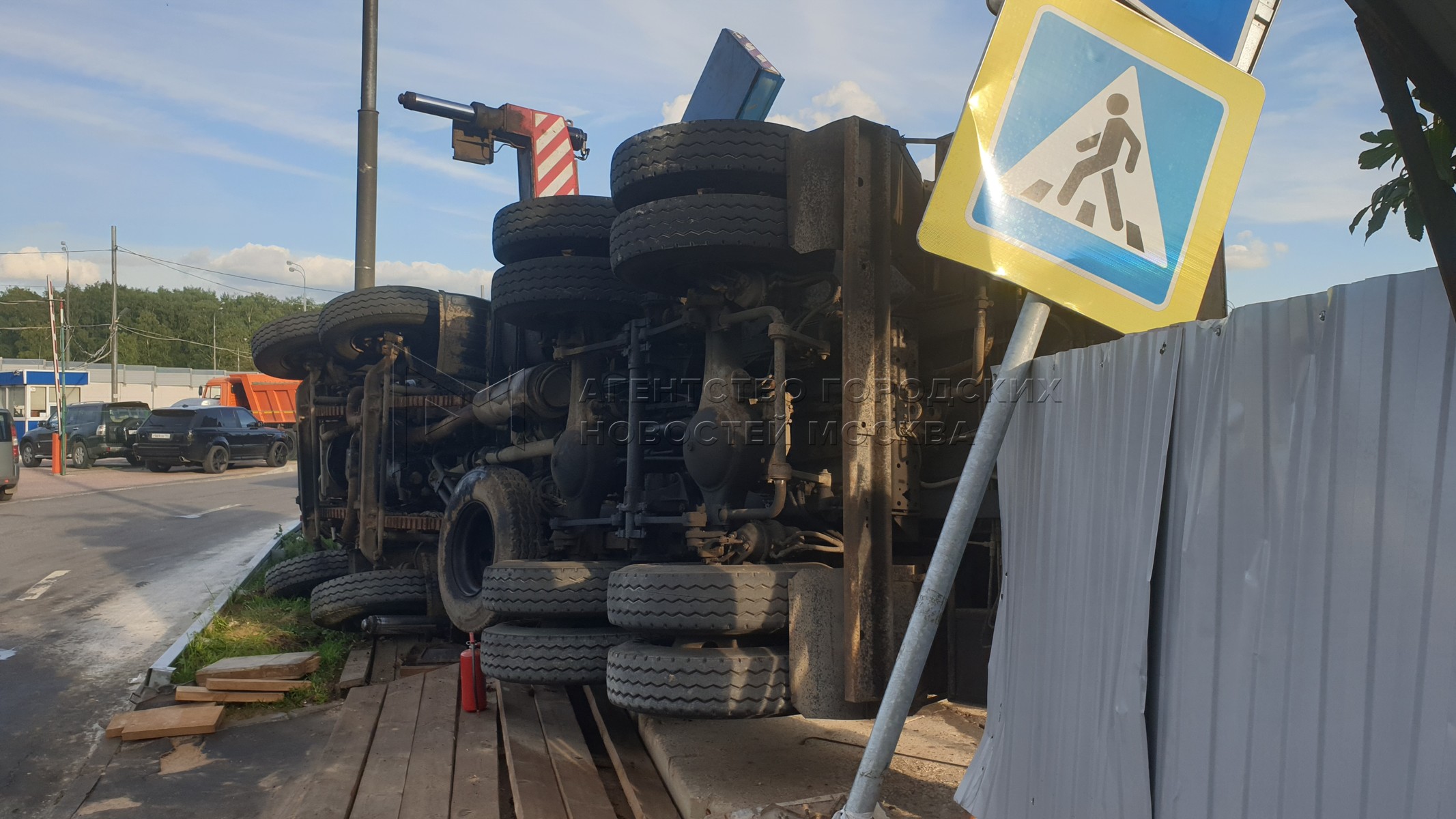• Описание: Последствия падения строительного крана на стройке на Дмитровском шоссе.