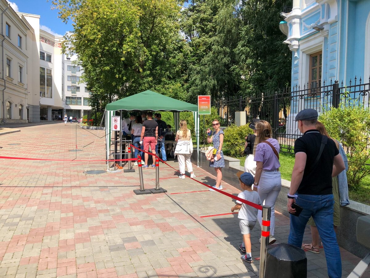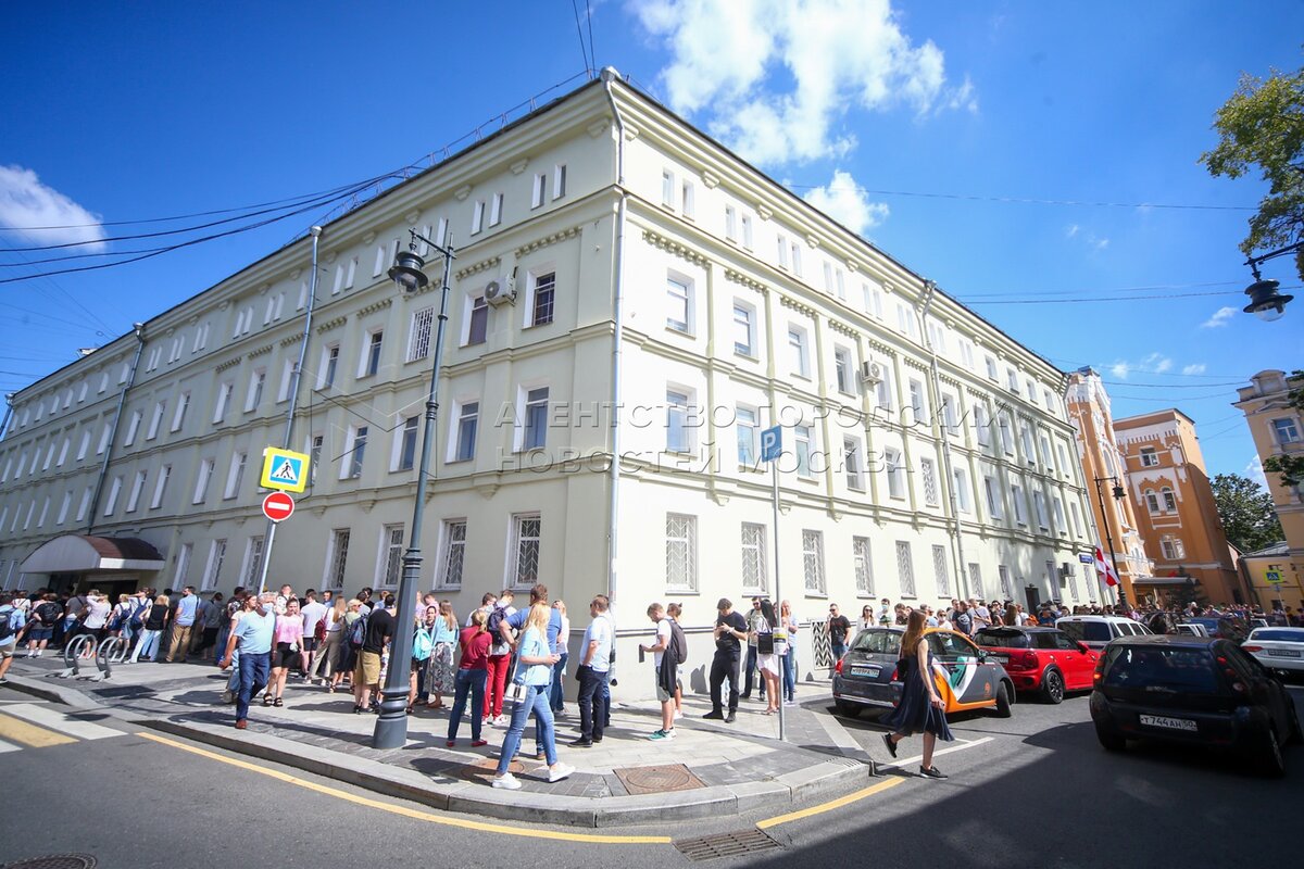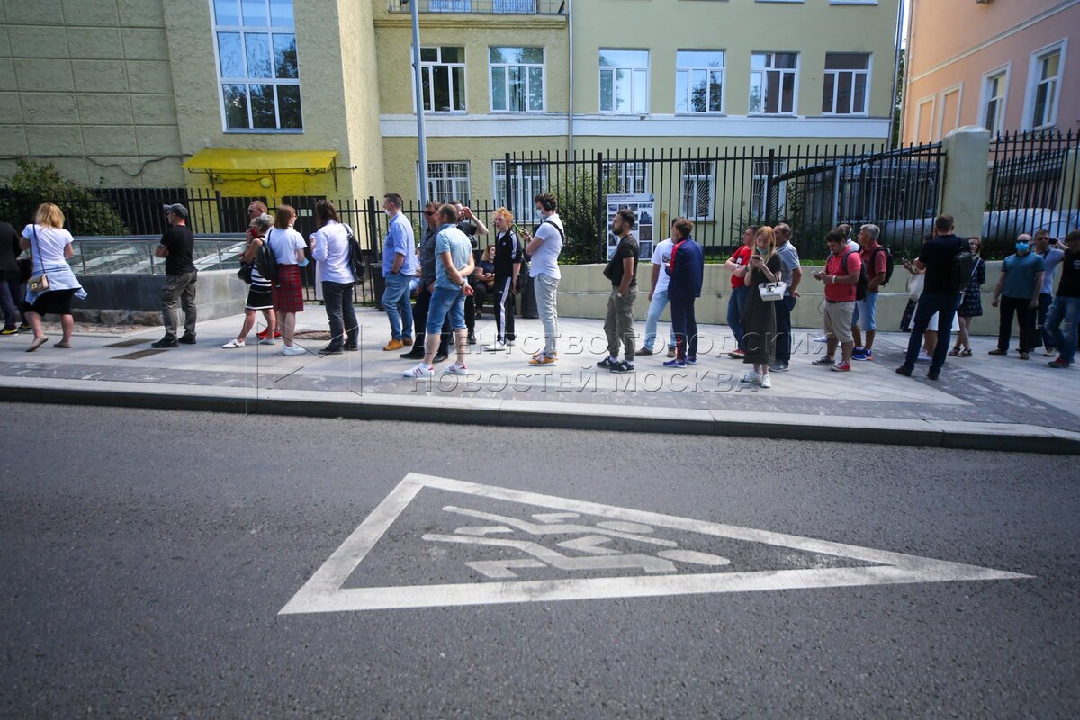 Очередь у посольства Белоруссии в центре Москвы в основной день выборов президента Белоруссии