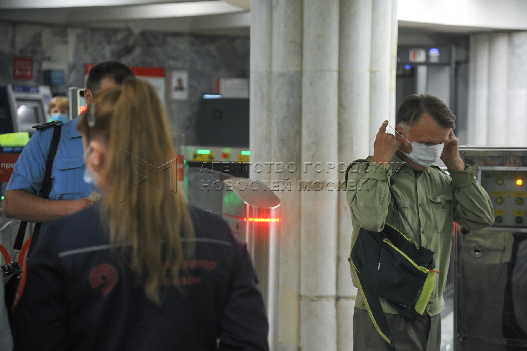 Рейд по проверке соблюдения масочного режима пассажирами в Московском метрополите...