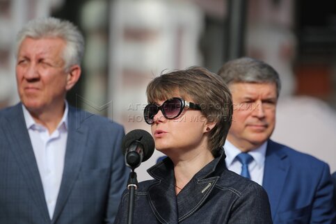 Руководитель департамента культуры города Москвы Александр Кибовский (по центру) ...