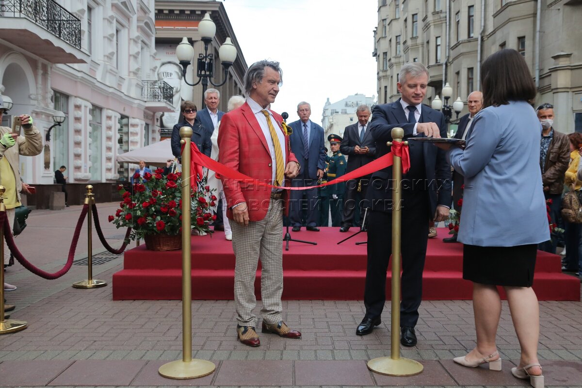 Художник Александр Шилов и телеведущая Анна Шатилова во время открытия на ул. Арб...