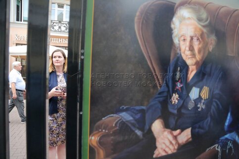 Открытие на ул. Арбат выставки портретов ветеранов «Они сражались за Родину!» раб...