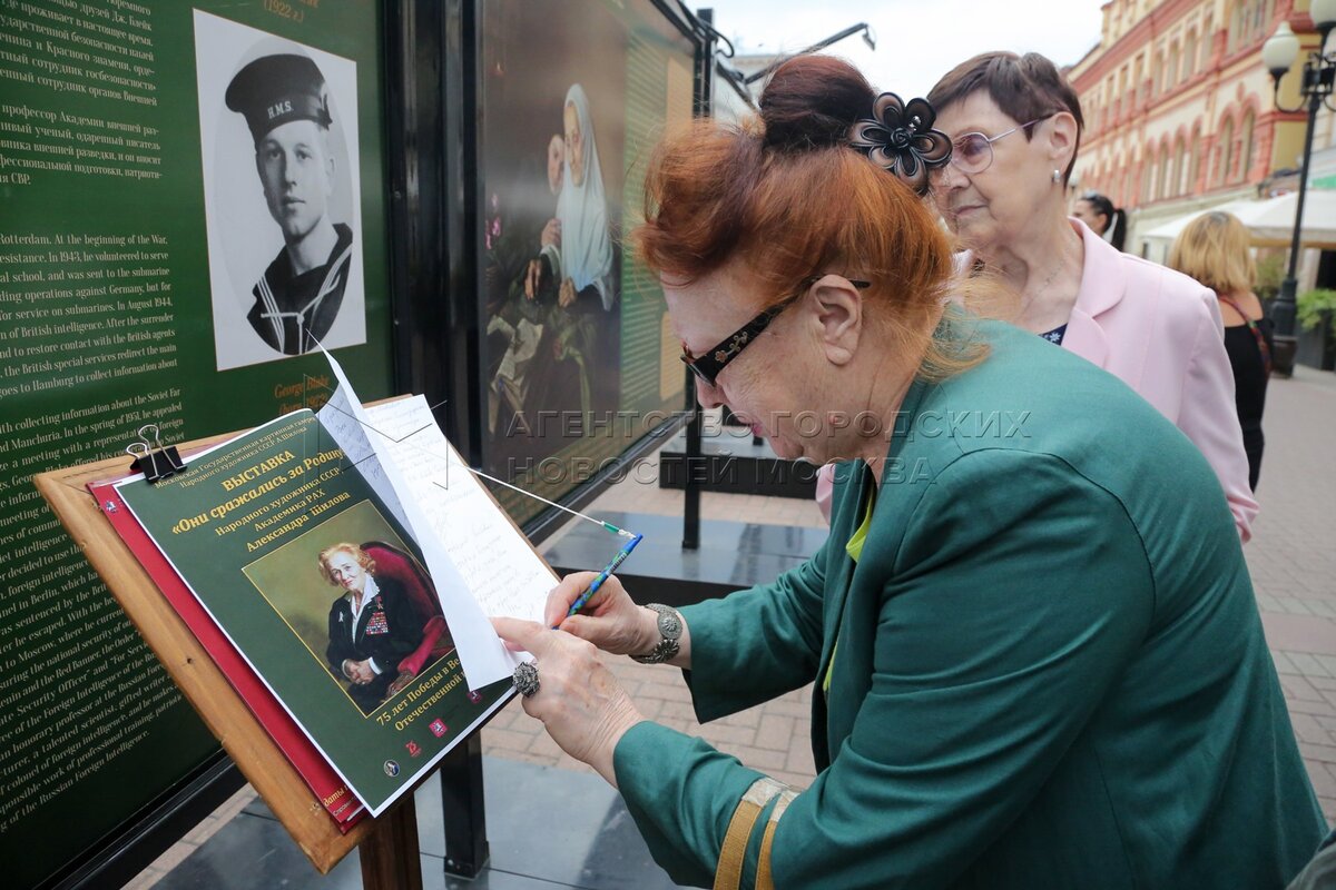 • Описание: Открытие на ул. Арбат выставки портретов ветеранов «Они сражались за Родину!» работы народного художника СССР Александра Шилова.