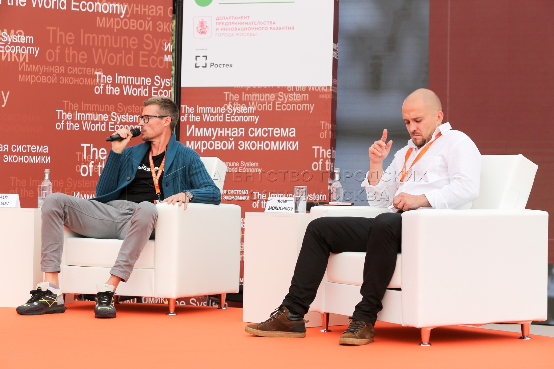 • Описание: Генеральный директор АО «Деловая среда» Виталий Тарасов (слева) и автор программы «Академия школьного предпринимательства» Иван Моручков во время III Столыпин-форума «Иммунная система мировой экономики» на площадке МГИМО.