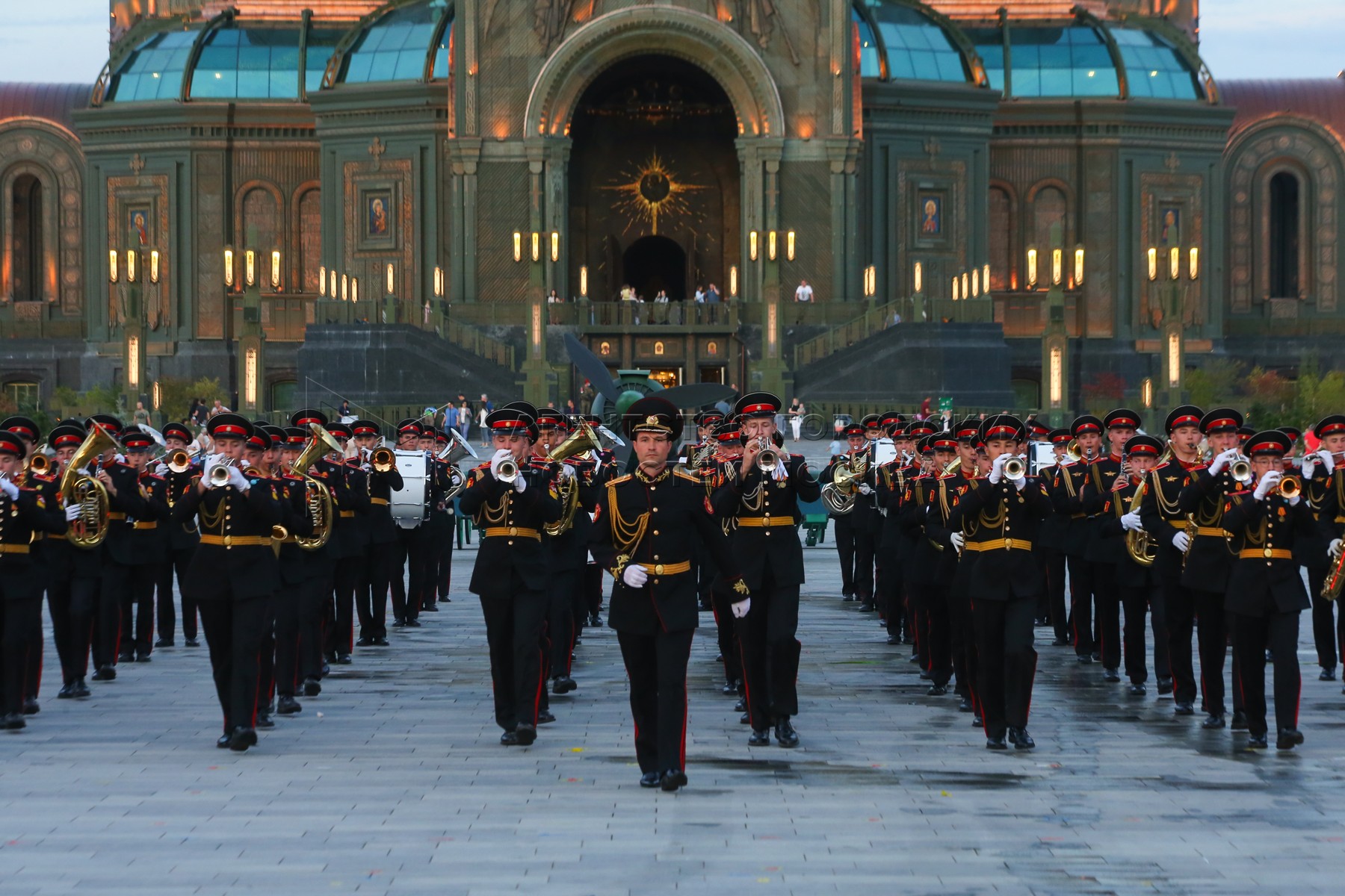 • Описание: Показательное представление XIII Международного военно-музыкального фестиваля «Спасская башня» на Соборной площади Главного храма Вооруженных Сил Российской Федерации.