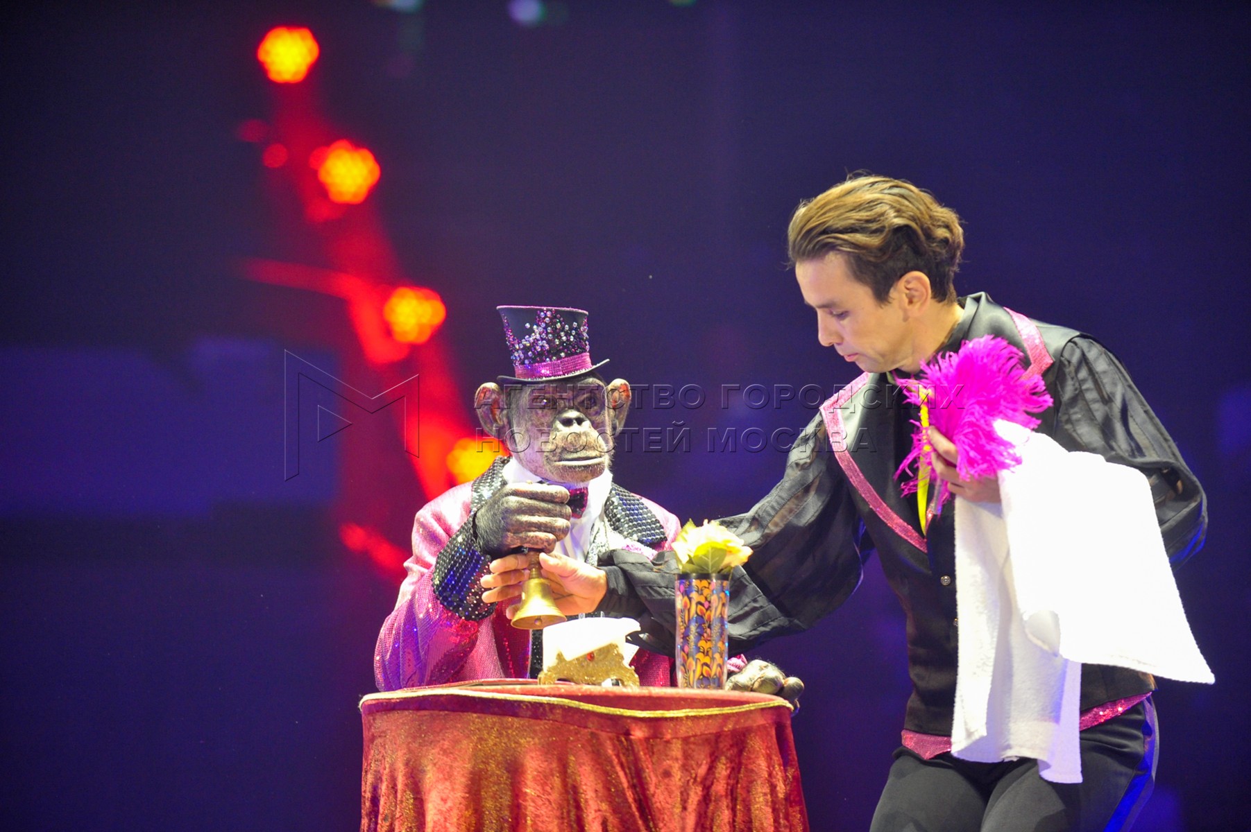 Дрессировщики Эдгард и Аскольд Запашные во время циркового спектакля «И100РИЯ» в ...