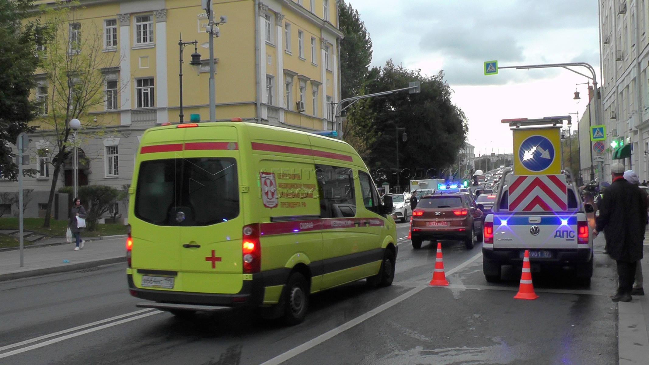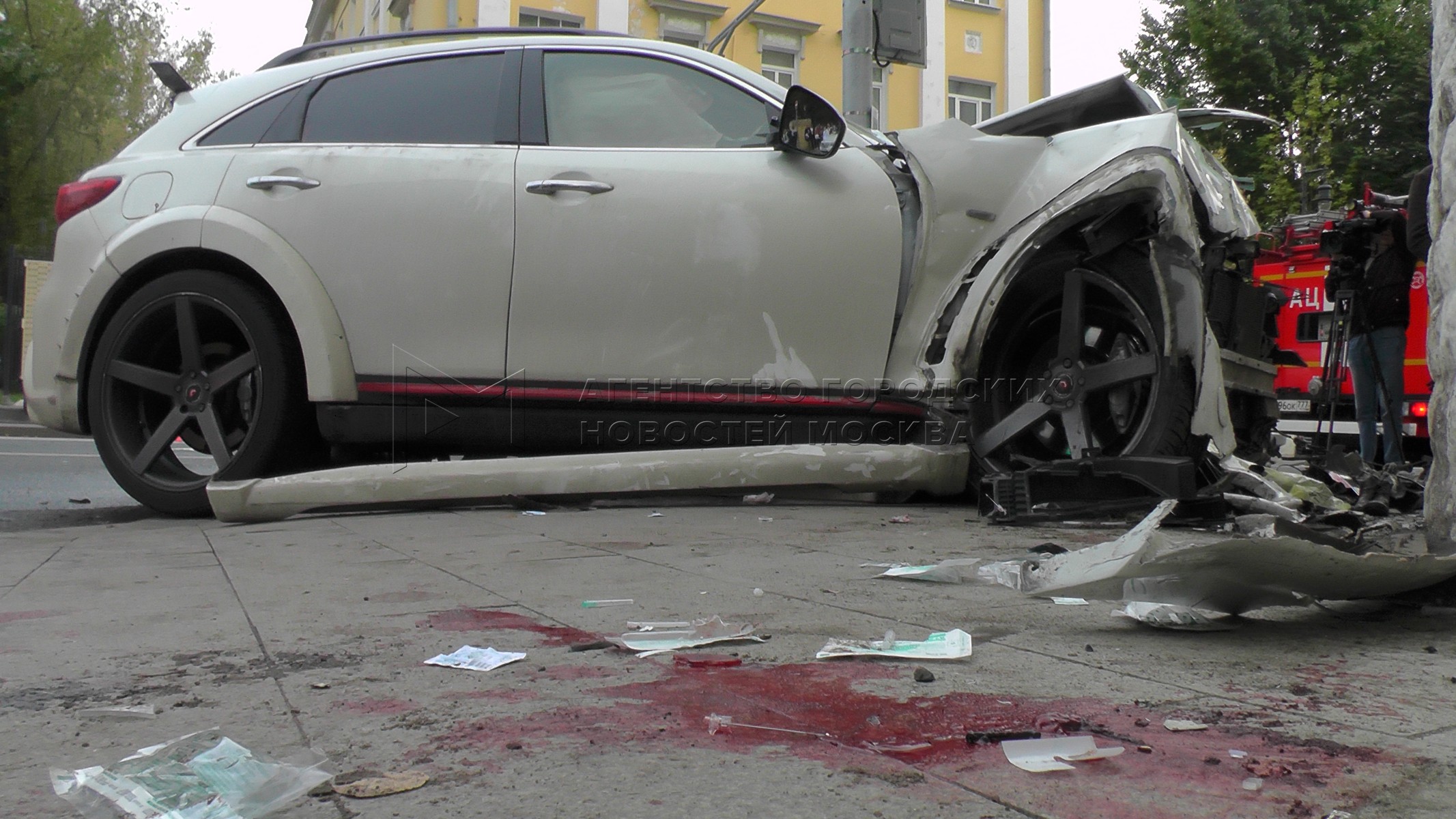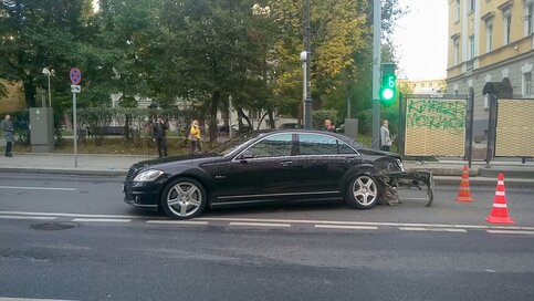 • Описание: Последствия ДТП с участием двух легковых автомобилей в районе д. 47 на ул. Остоженка.