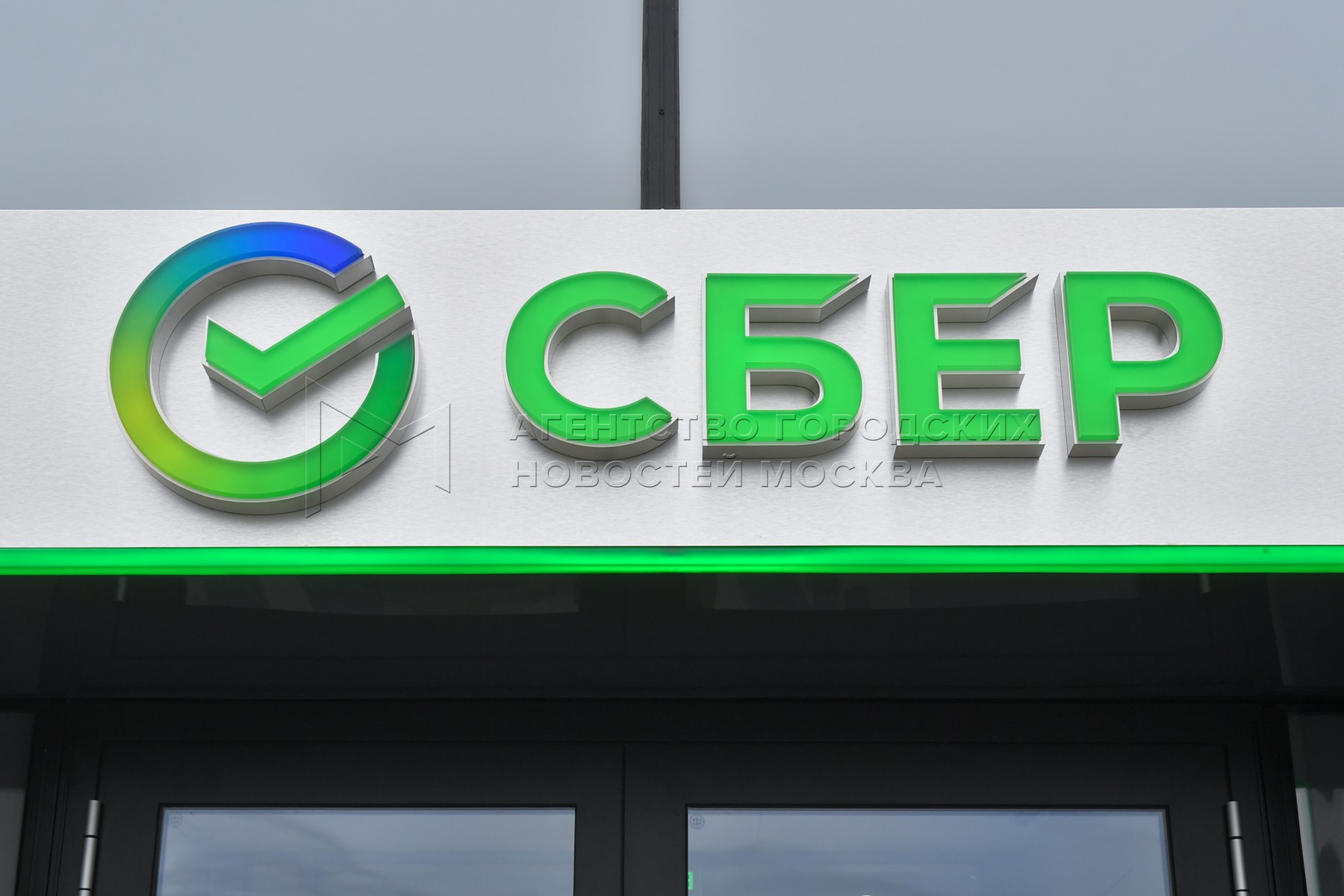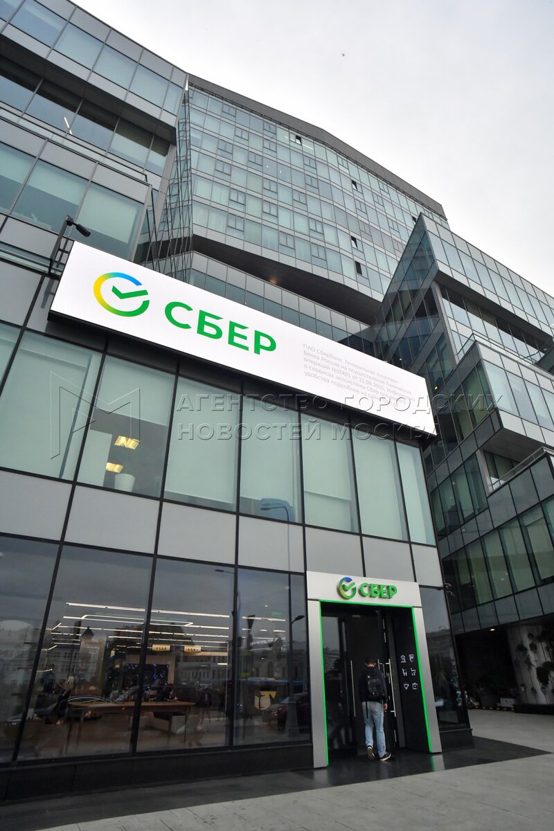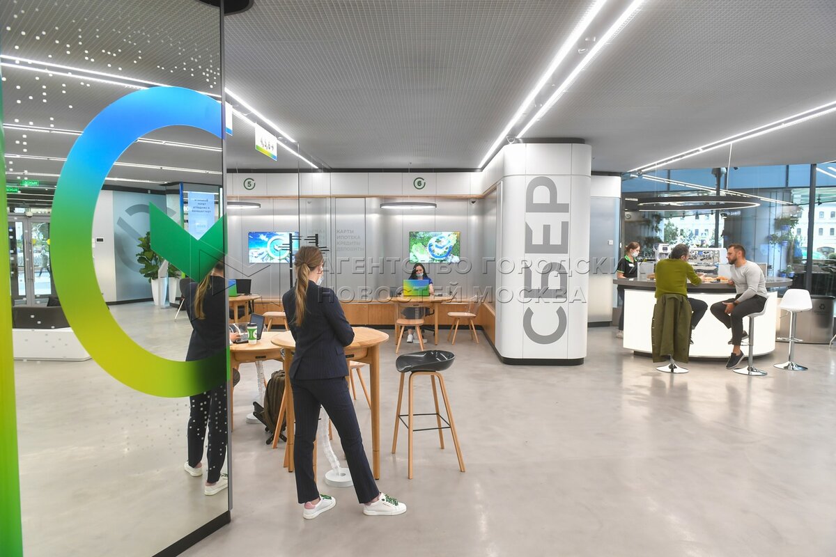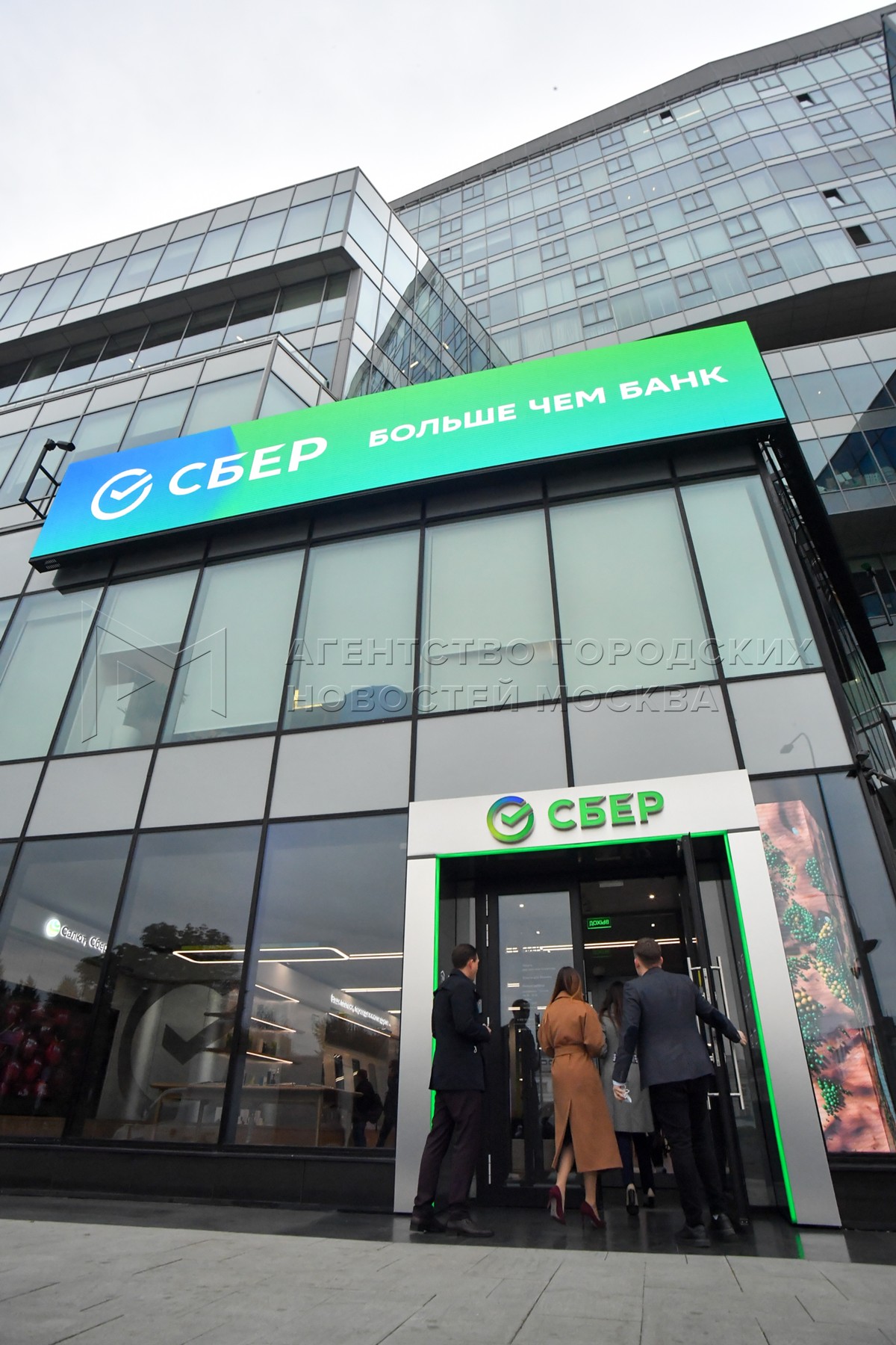 Новый логотип Сбербанка на первом офисе в новом формате, открывшемся на Цветном б...