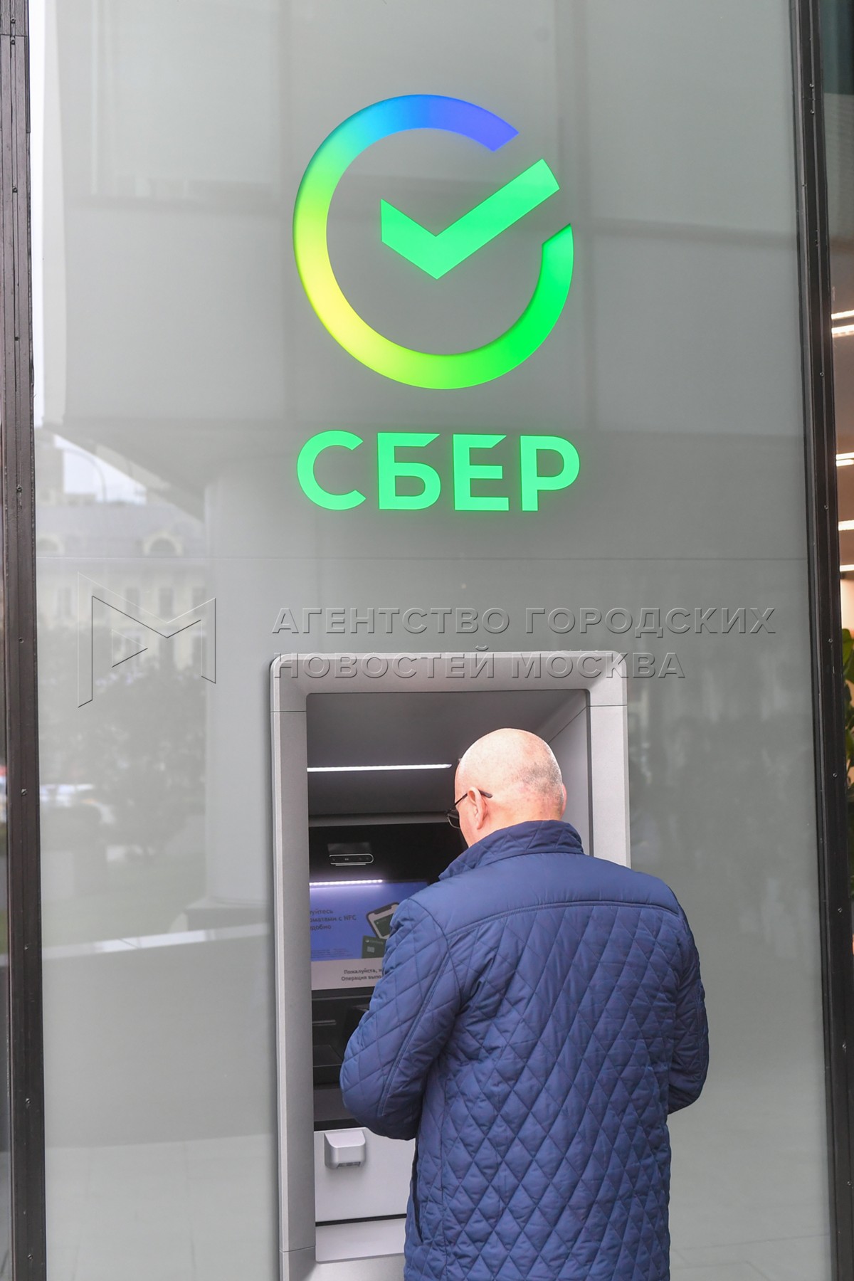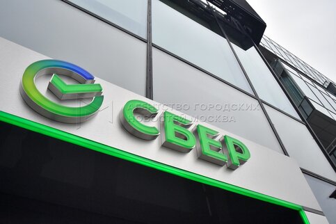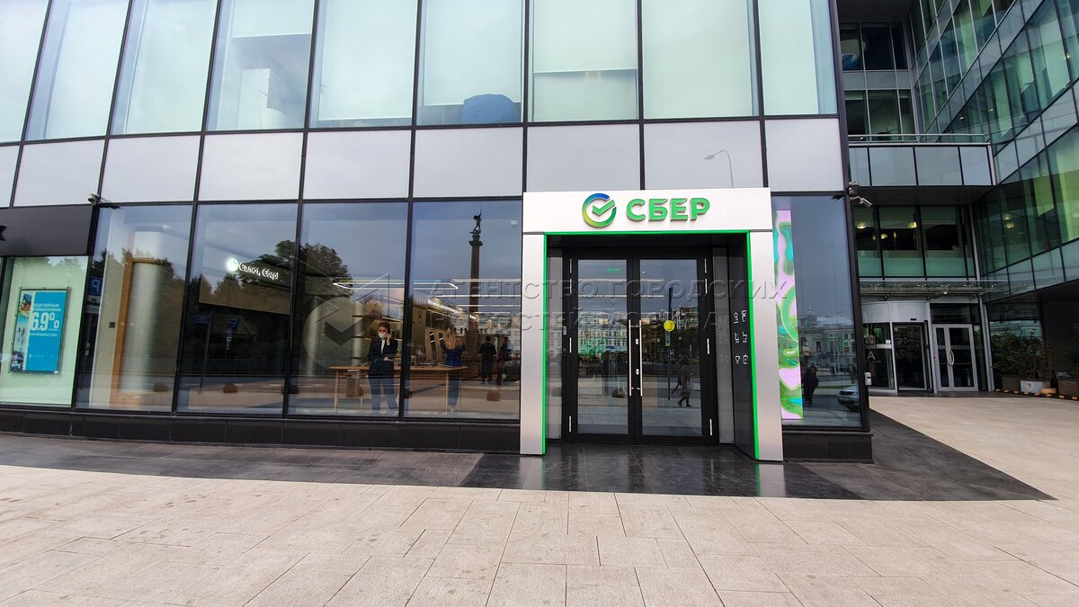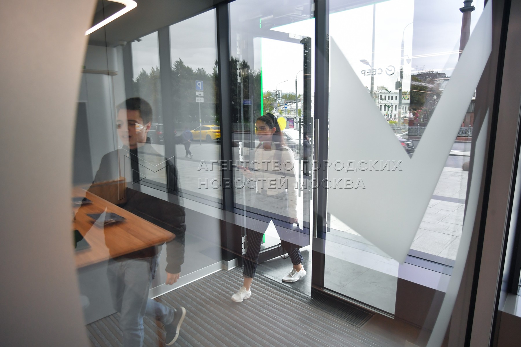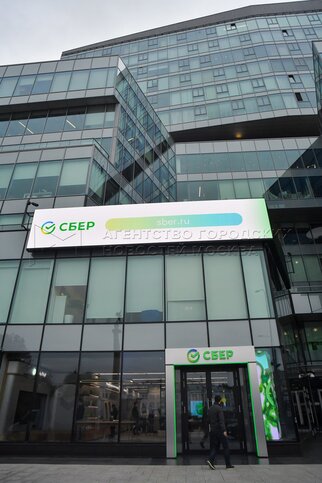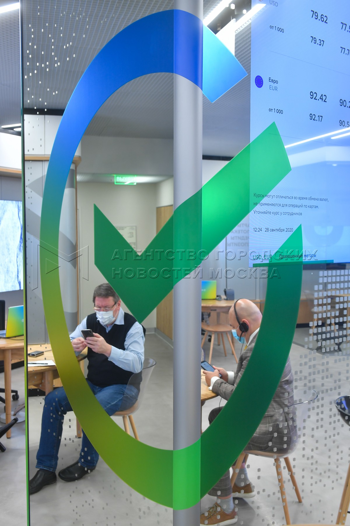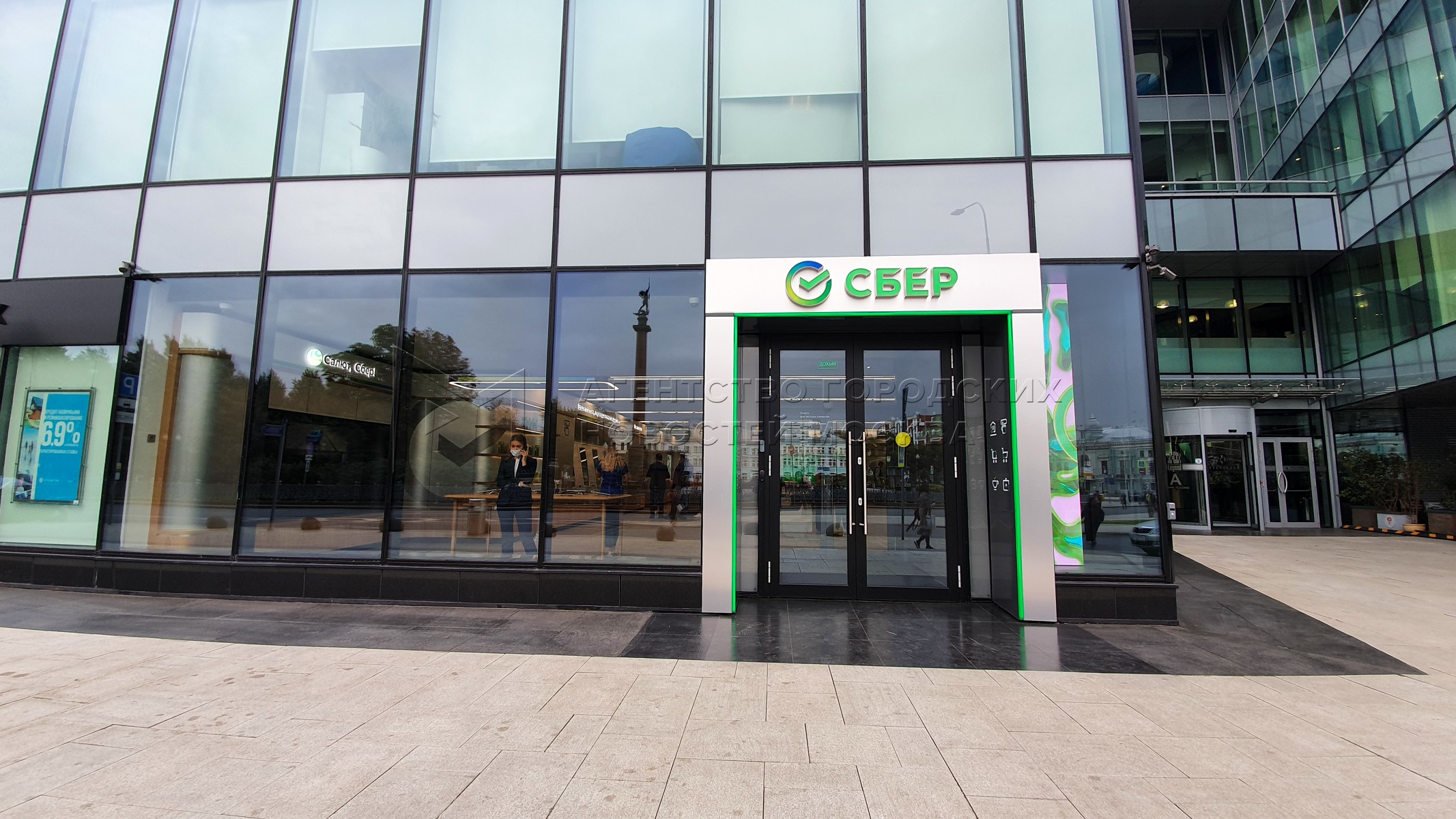 Новый логотип Сбербанка на первом офисе в новом формате, открывшемся на Цветном б...