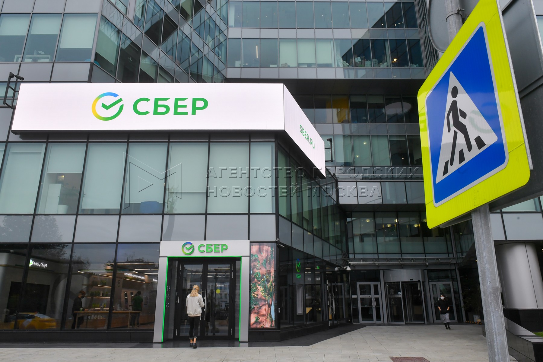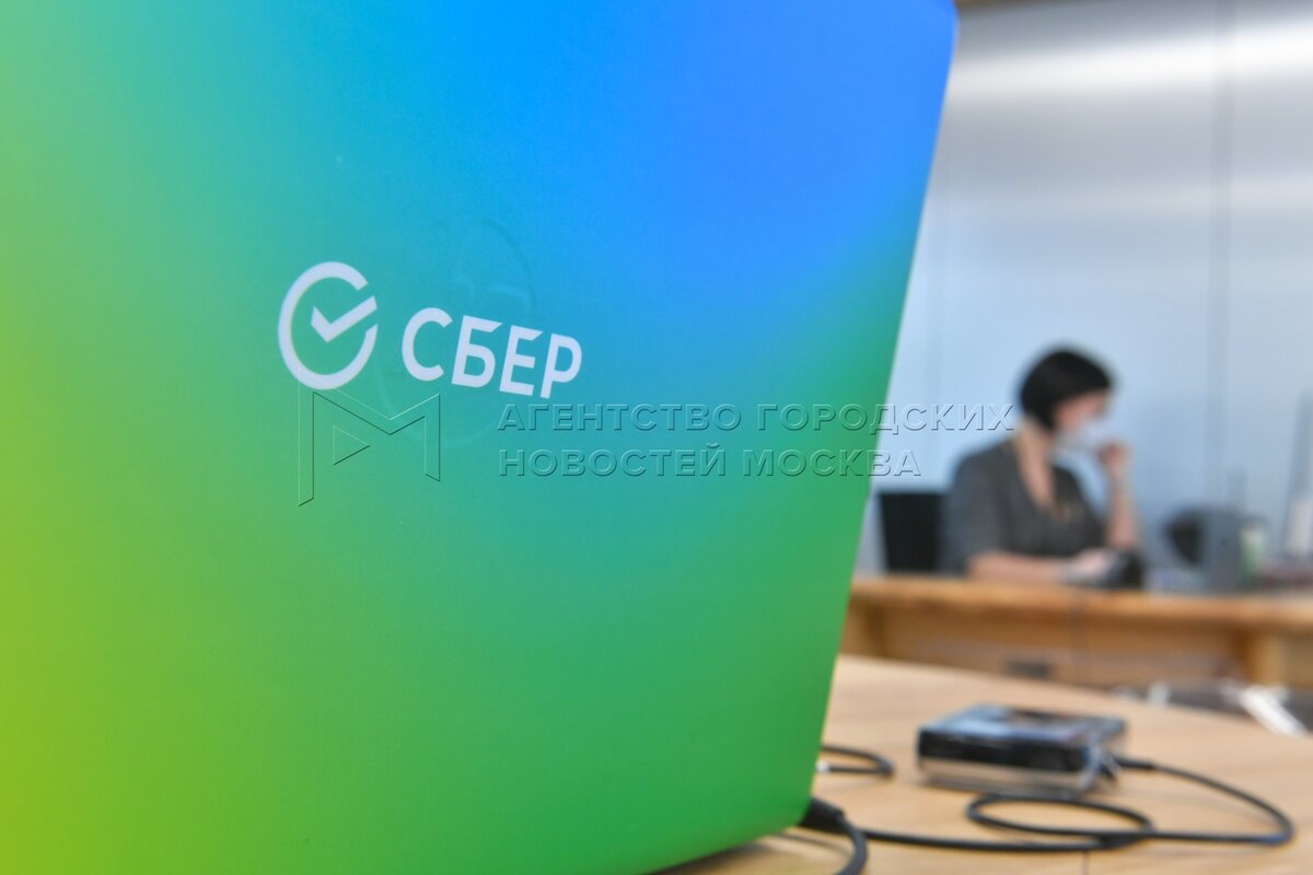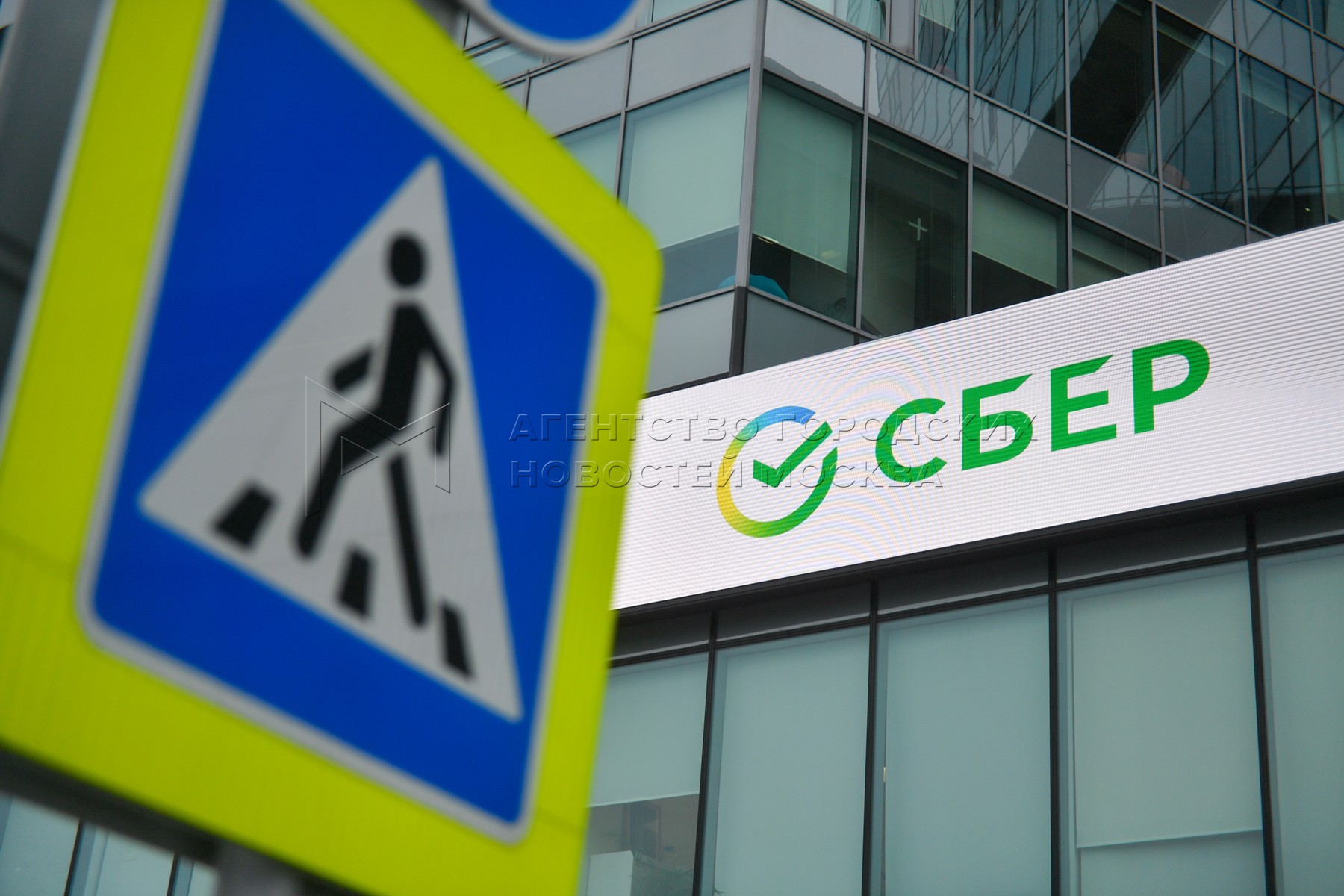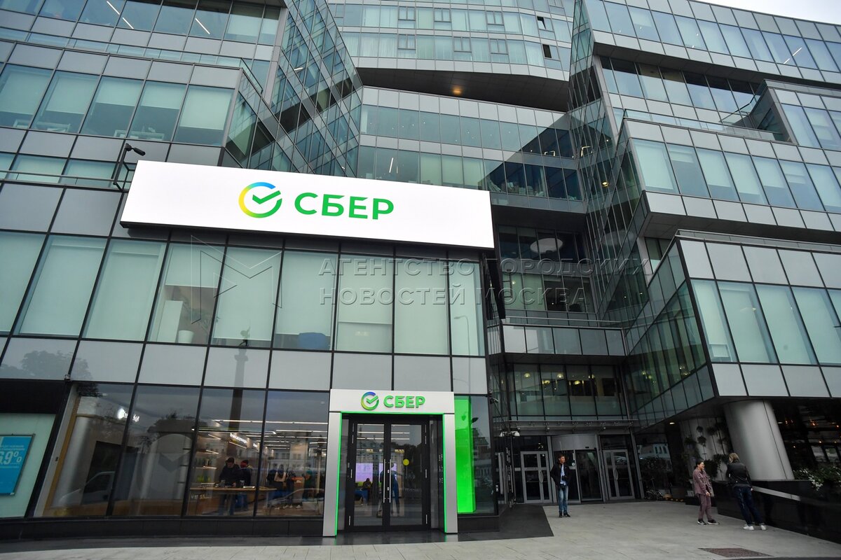 Новый логотип Сбербанка на первом офисе в новом формате, открывшемся на Цветном б...