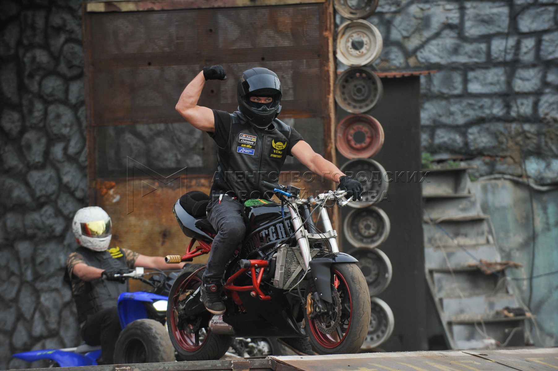 Руководитель Объединения каскадеров «Мастер» Игорь Панин (слева) во время шоу «Ру...