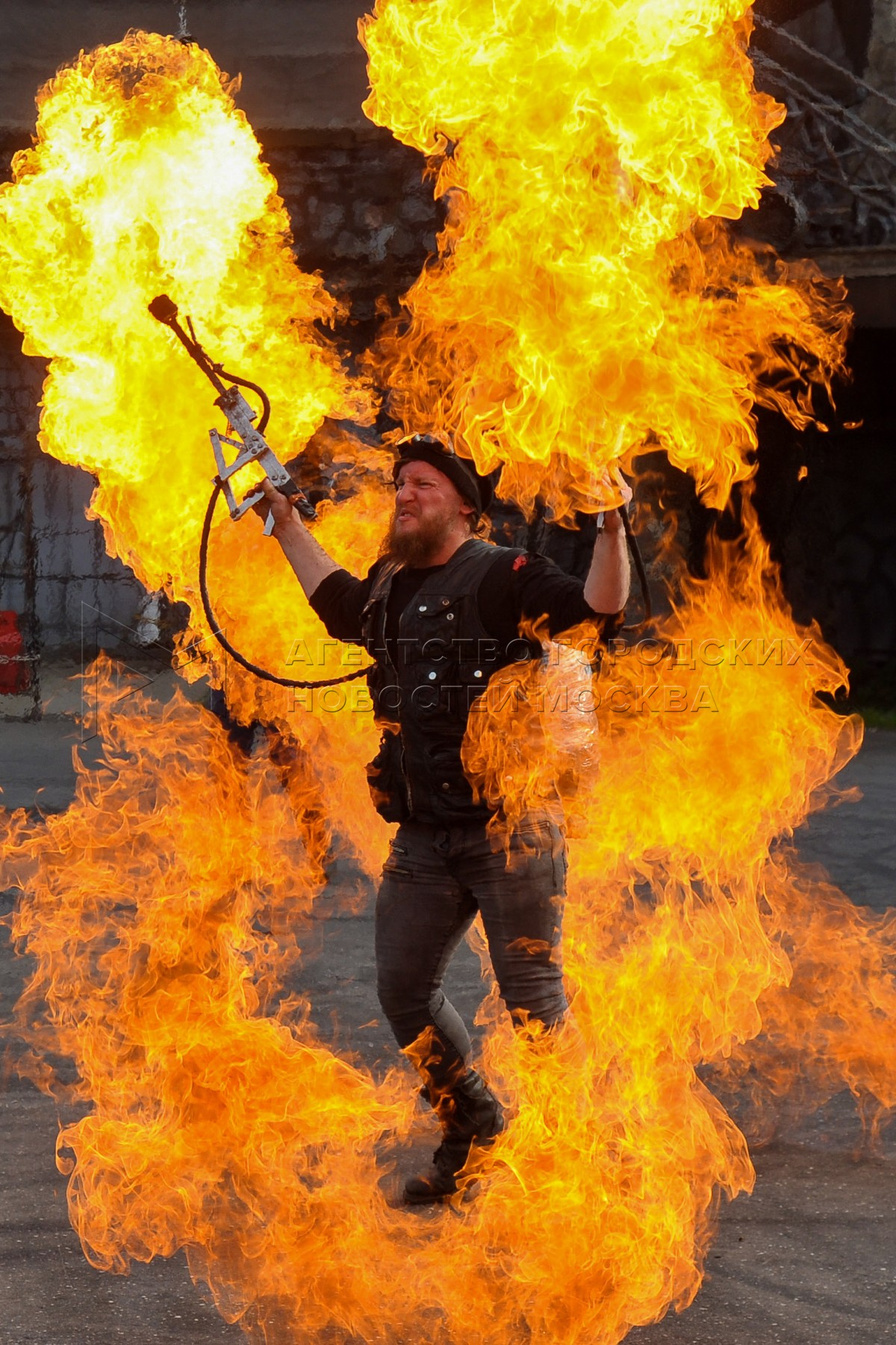 Руководитель Объединения каскадеров «Мастер» Игорь Панин во время шоу «Русский фо...