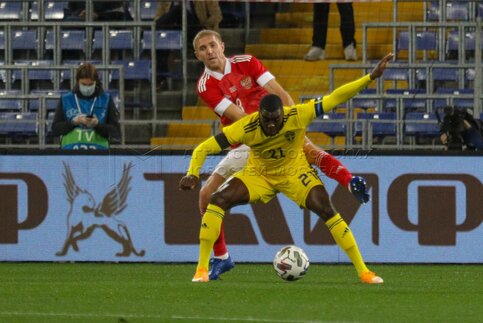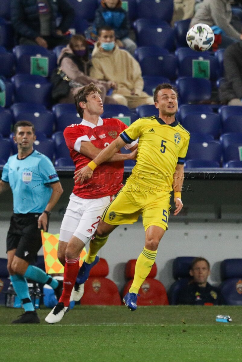 - Описание: Игроки слева направо - Карл Старфельт (Швеция) и Артем Дзюба (Россия) во время контрольного матча по футболу между национальными сборными России и Швеции на стадионе «ВЭБ Арена».