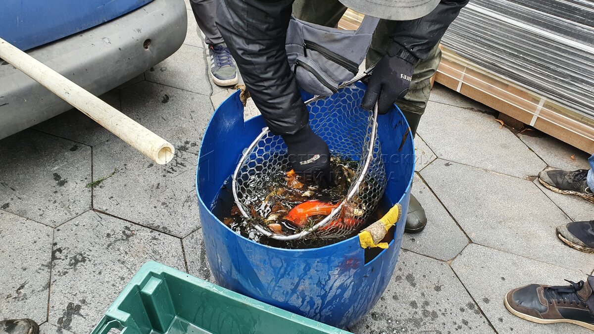 • Заголовок: Вылов рыбы из прудов в парке «Зарядье» для отправки на зимовку