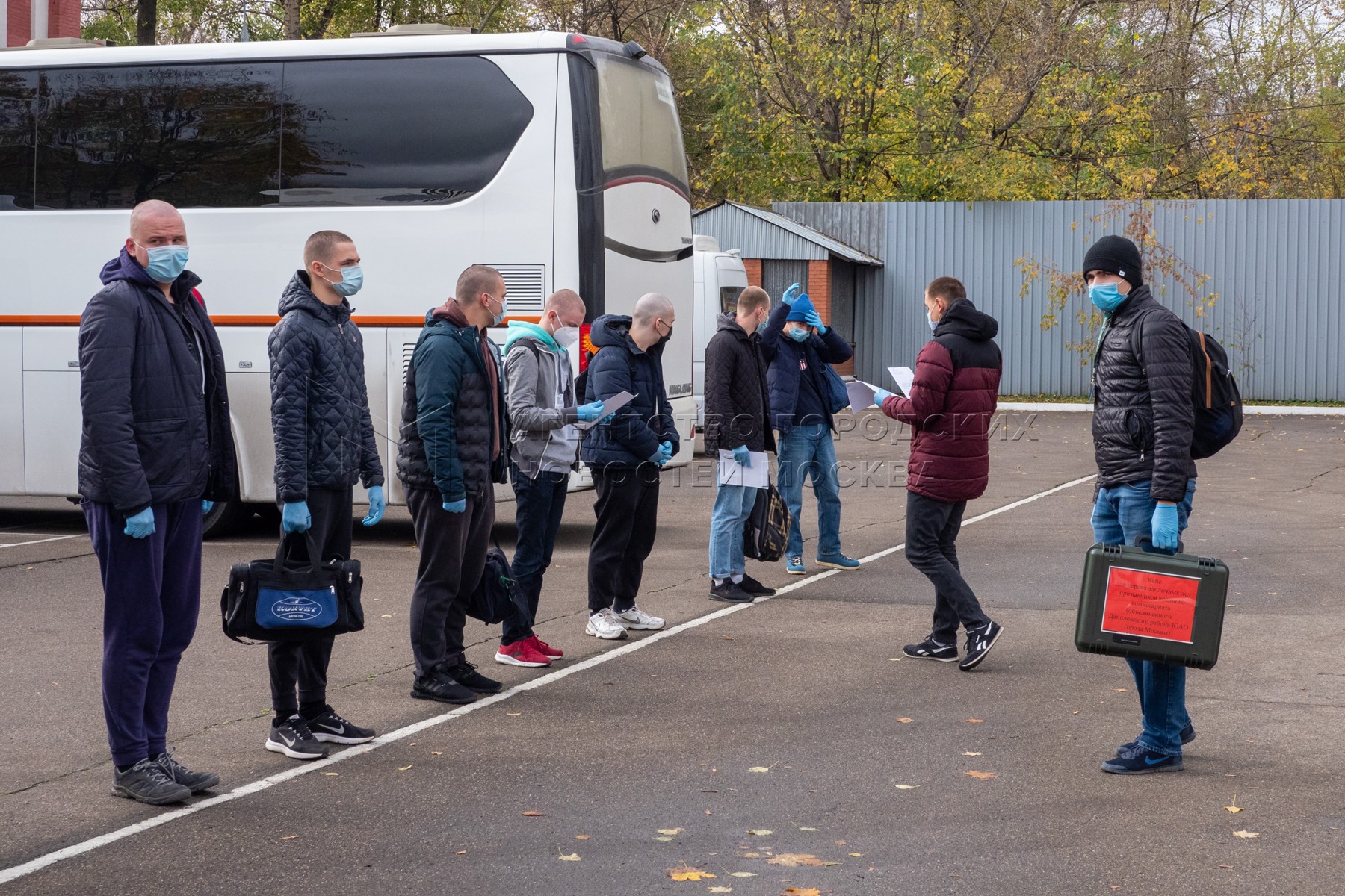 - Заголовок: Первая отправка призывников к местам прохождения службы со сборного пункта военного комиссариата Москвы