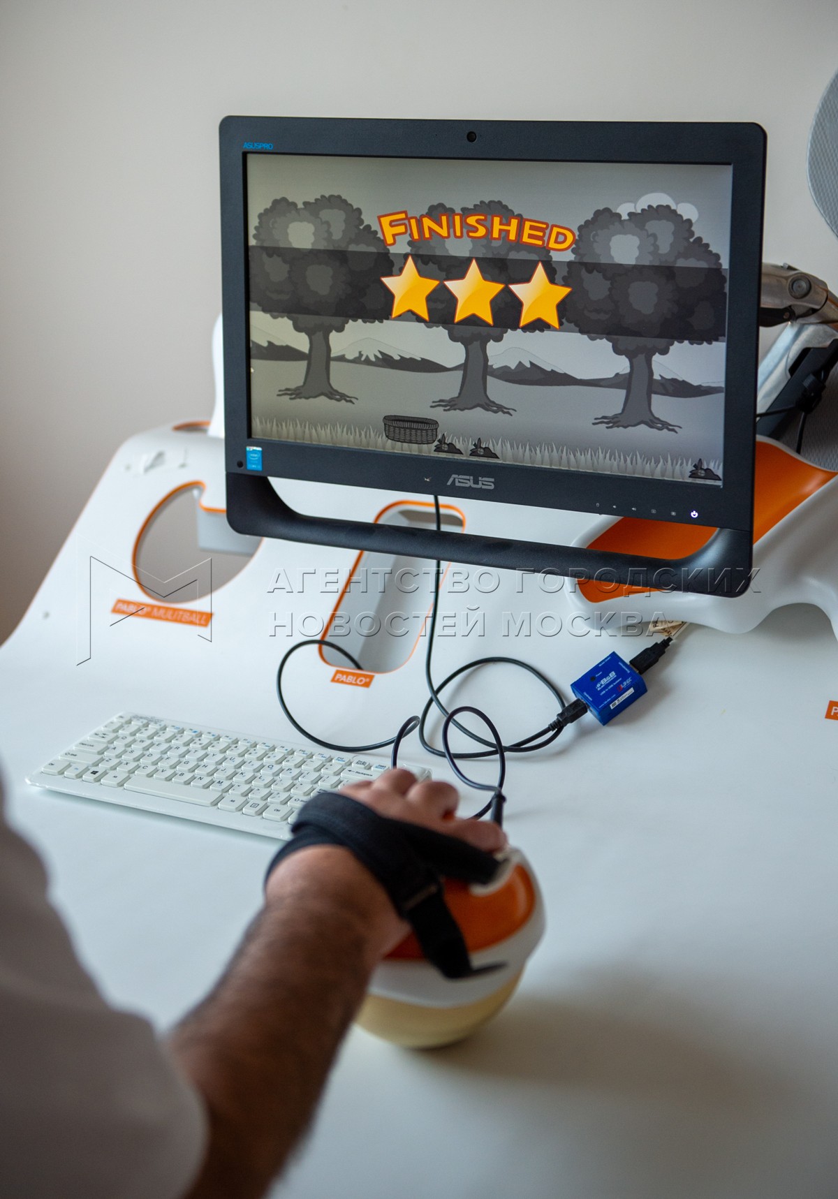 Занятия на тренажерах с биологической обратной связью для верхних конечностей для пациентов после перенесенного ишемического инсульта в Федеральном центре мозга и нейротехнологий ФМБА России.