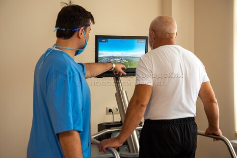 Занятия на антигравитационной беговой дорожке в Федеральном центре мозга и нейротехнологий ФМБА России.